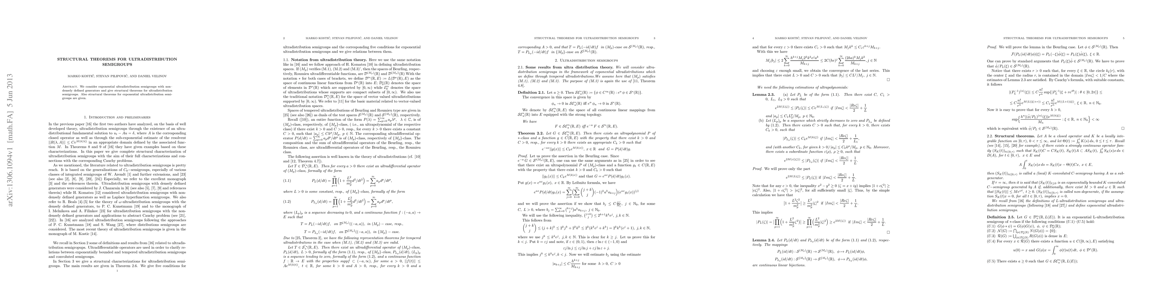 We consider exponential ultradistribution semigroups with non--densely defined generators and give structural theorems for ultradistribution semigroups. Also structural theorems for exponential ultradistribution semigroups are given.