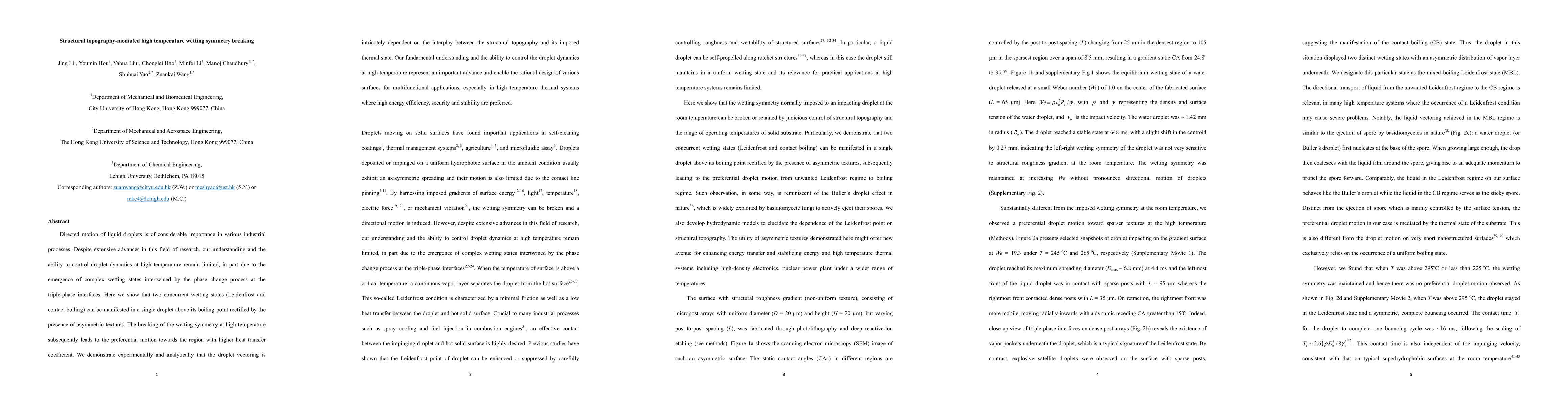 This paper investigates the directed motion of liquid droplets at high temperature, demonstrating that asymmetric textures can induce preferential droplet motion by breaking wetting symmetry. The study reveals the interplay between structural topography and thermal state, offering insights for the rational design of surfaces in high-temperature thermal systems.