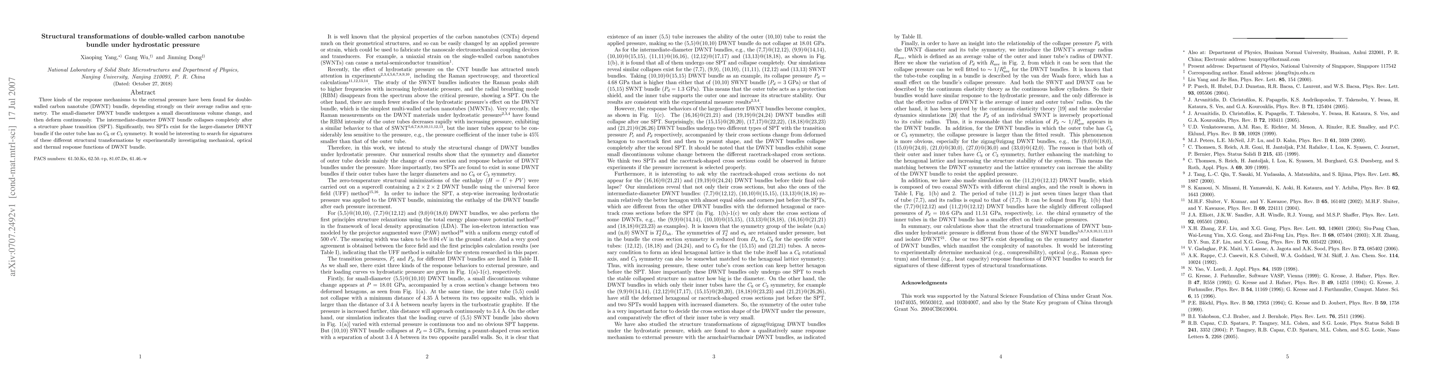 Three kinds of the response mechanisms to the external pressure have been found for double-walled carbon nanotube (DWNT) bundle, depending strongly on their average radius and symmetry. The small-diameter DWNT bundle undergoes a small discontinuous volume change, and then deform continuously. The intermediate-diameter DWNT bundle collapses completely after a structure phase transition (SPT). Significantly, two SPTs exist for the larger-diameter DWNT bundle if the outer tube has no $C_{6}$ or $C_{3}$ symmetry. It would be interesting to search for signatures of these different structural transformations by experimentally investigating mechanical, optical and thermal response functions of DWNT bundle.