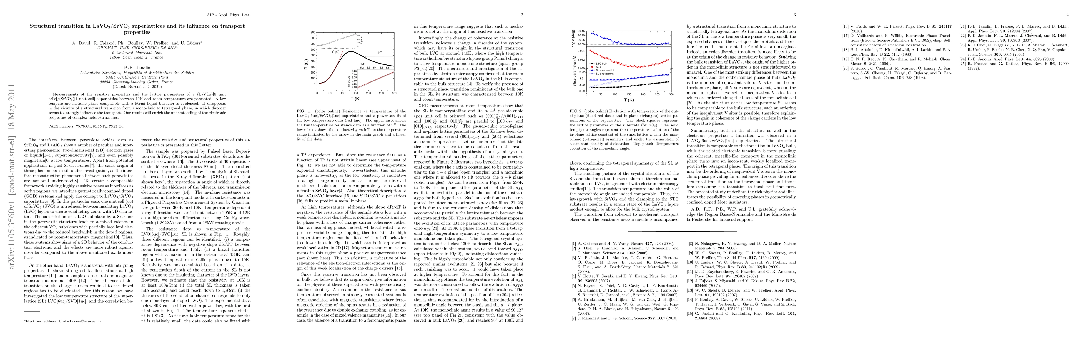 Measurements of the resistive properties and the lattice parameters of a (LaVO3)[6 unit cells]/(SrVO3)[1 unit cell] superlattice between 10K and room temperature are presented. A low temperature metallic phase compatible with a Fermi liquid behavior is evidenced. It disappears in the vicinity of a structural transition from a monoclinic to tetragonal phase, in which disorder seems to strongly influence the transport. Our results will enrich the understanding of the electronic properties of complex heterostructures.