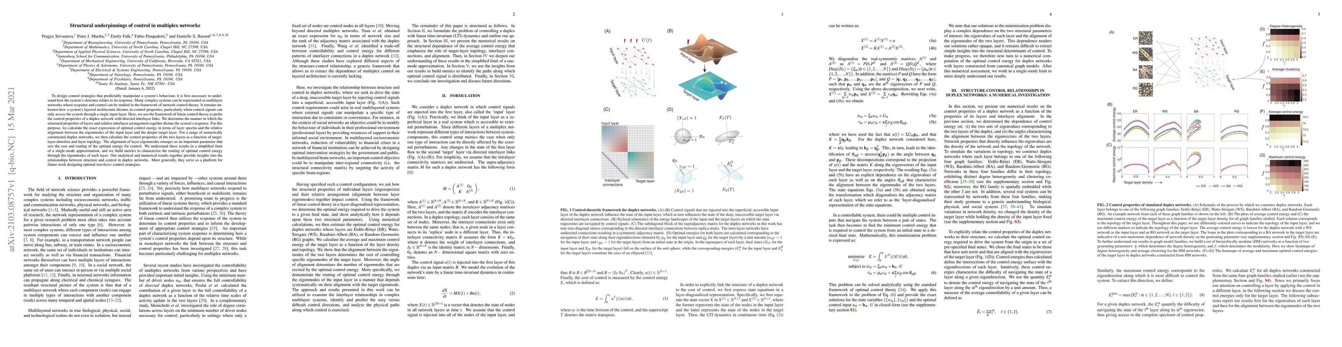 This paper investigates how the structural properties of duplex networks influence their controllability, focusing on the role of interlayer links and eigenmode alignment. It derives an optimal control energy expression and finds that the alignment of layer eigenmodes significantly affects control cost and routing, providing a foundation for developing interlayer control strategies.