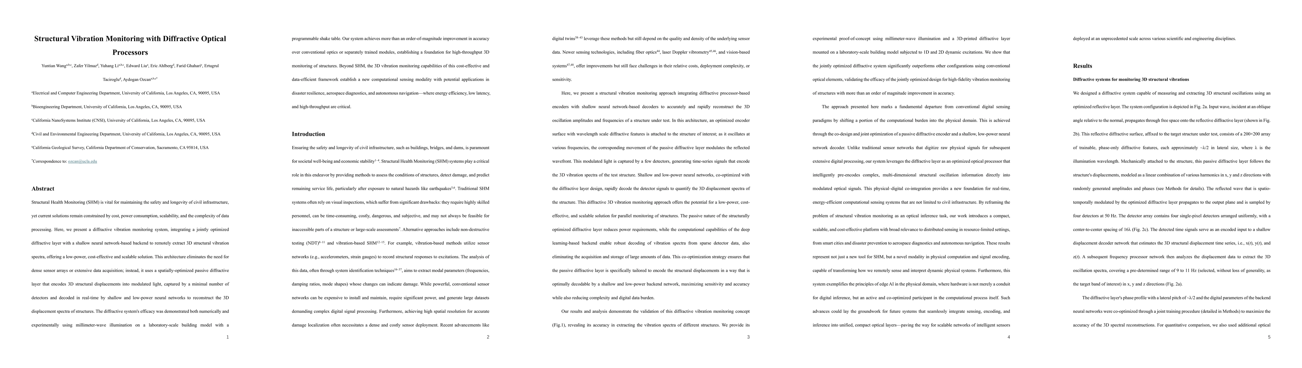 Researchers developed a low-power, cost-effective system for monitoring structural vibrations using diffractive optical processors, achieving more than an order-of-magnitude improvement in accuracy over conventional optics.