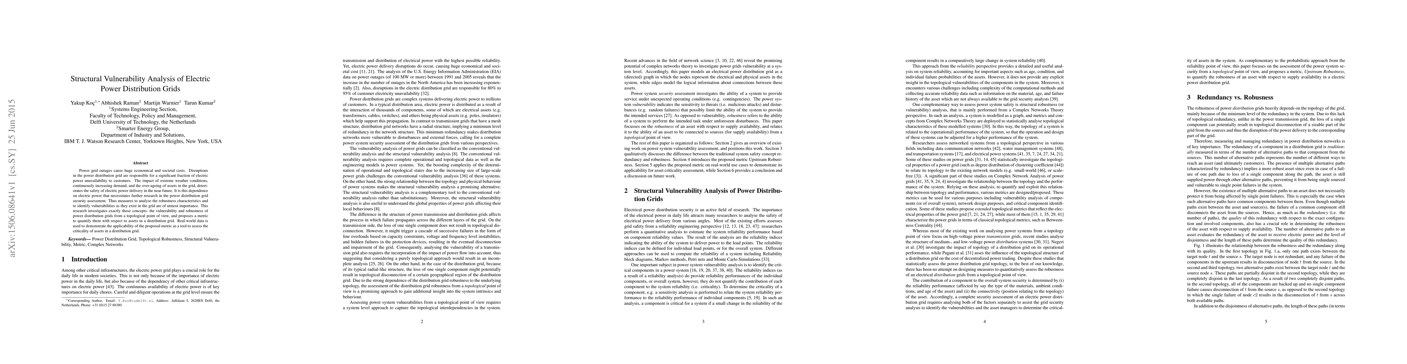 This research analyzes the structural vulnerability of electric power distribution grids, focusing on the robustness characteristics and identifying vulnerabilities due to extreme weather, increasing demand, and aging assets. It proposes a new metric to quantify these vulnerabilities and demonstrates its application using real-world data to assess the criticality of grid assets.