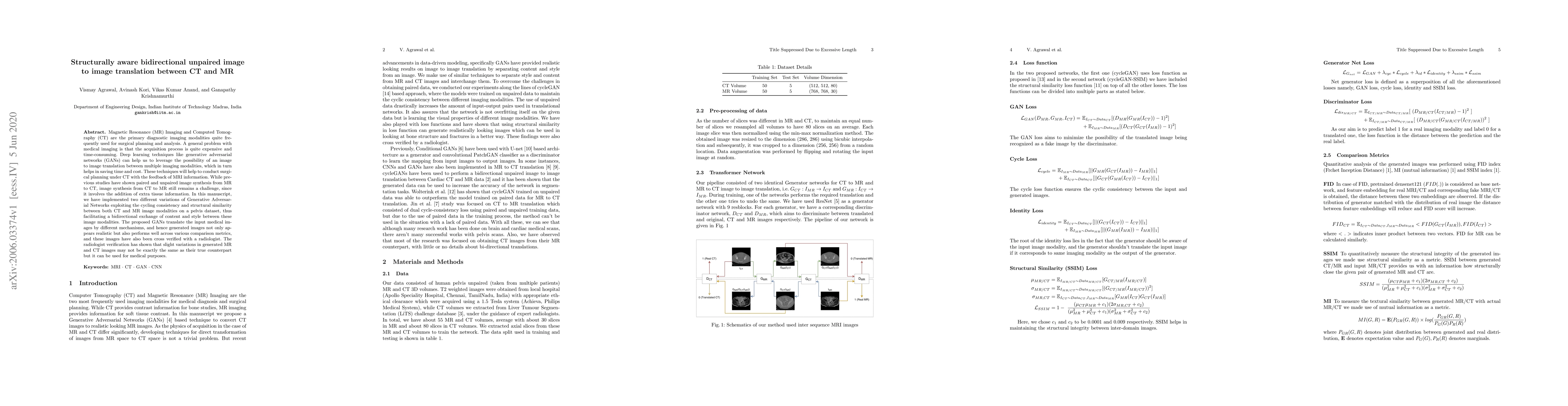This paper proposes a novel Generative Adversarial Network (GAN) for bidirectional unpaired translation between CT and MR images, leveraging structural consistency and cycling consistency. The method facilitates cost-effective surgical planning by integrating MRI information into CT scans, with radiologist verification confirming its utility despite minor discrepancies.
