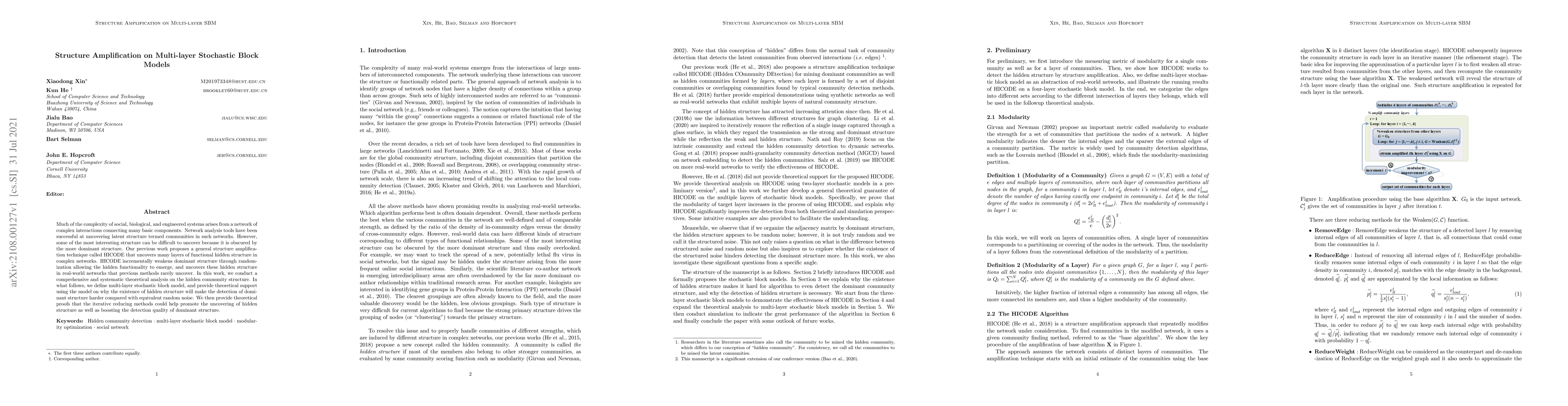 The paper theoretically analyzes multi-layer stochastic block models, distinguishing between random noise and structured noise from hidden communities. It proposes HICODE, an iterative method to amplify hidden structure by incrementally weakening dominant structure through randomization.