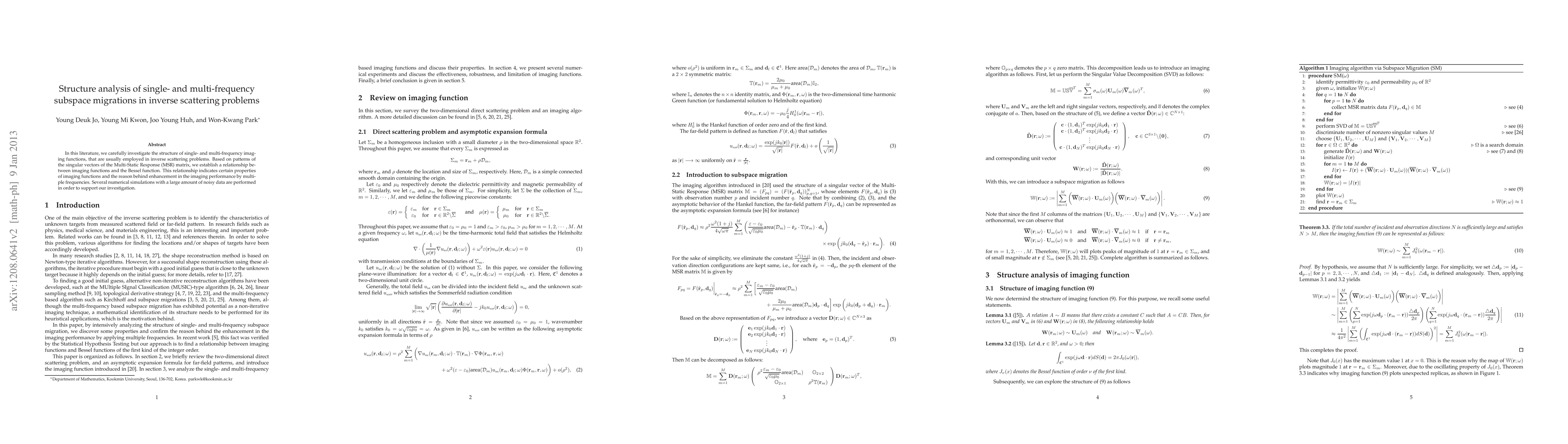 This paper analyzes the structure of single- and multi-frequency imaging functions in inverse scattering problems, establishing a relationship between these functions and the Bessel function based on MSR matrix singular vectors. Numerical simulations support the enhanced imaging performance observed with multiple frequencies.