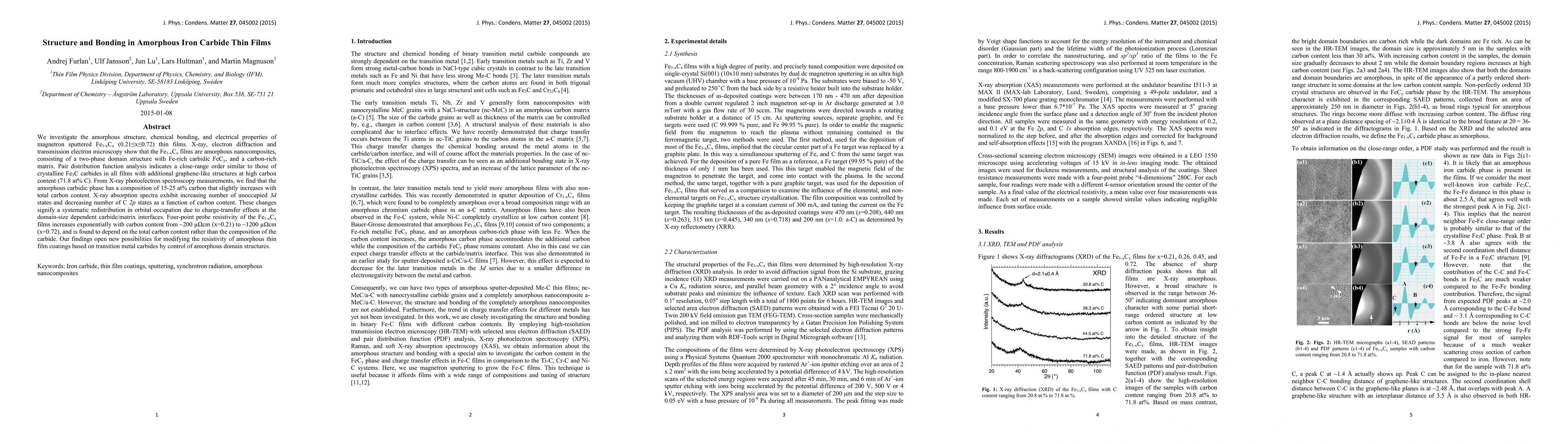 This research examines magnetron sputtered amorphous Fe1-xCx thin films, revealing a two-phase domain structure with Fe-rich carbidic FeCy and a carbon-rich matrix, and shows resistivity increases exponentially with carbon content, suggesting potential for tuning resistivity through domain structure manipulation.