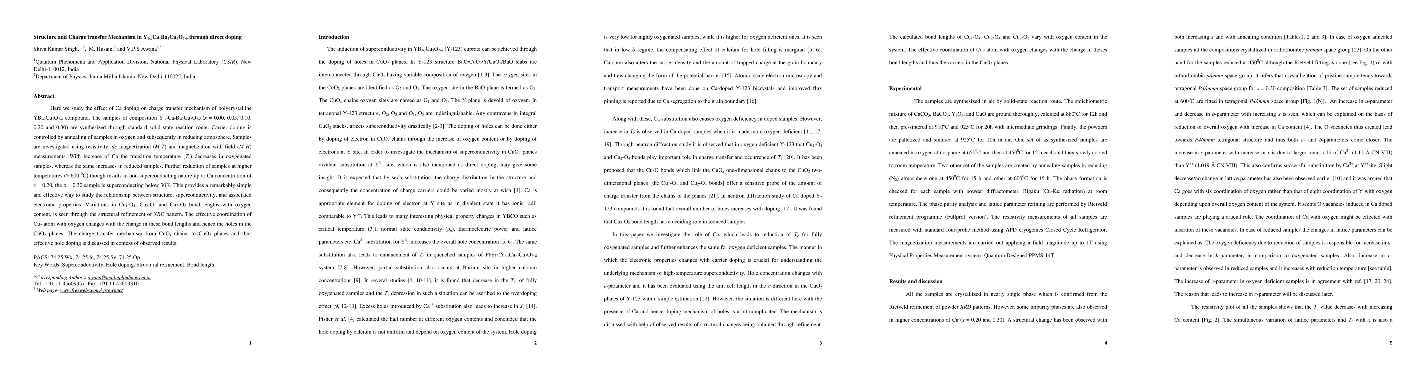 This study investigates the effect of Ca doping on the charge transfer mechanism in YBa2Cu3O7-{ heta} through direct doping, revealing a complex relationship between structure, superconductivity, and electronic properties.
