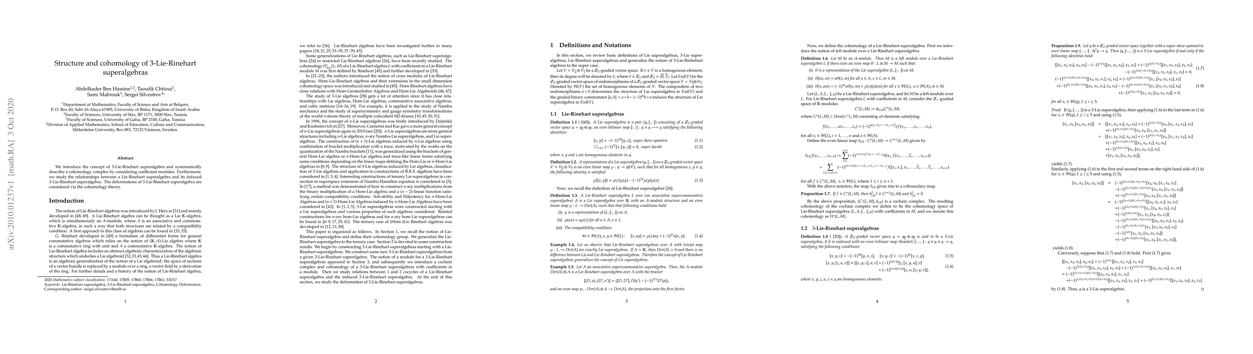 This paper introduces 3-Lie-Rinehart superalgebras and develops a cohomology complex to study their structure and deformations. It also examines the relationships between Lie-Rinehart superalgebras and their induced 3-Lie-Rinehart counterparts.