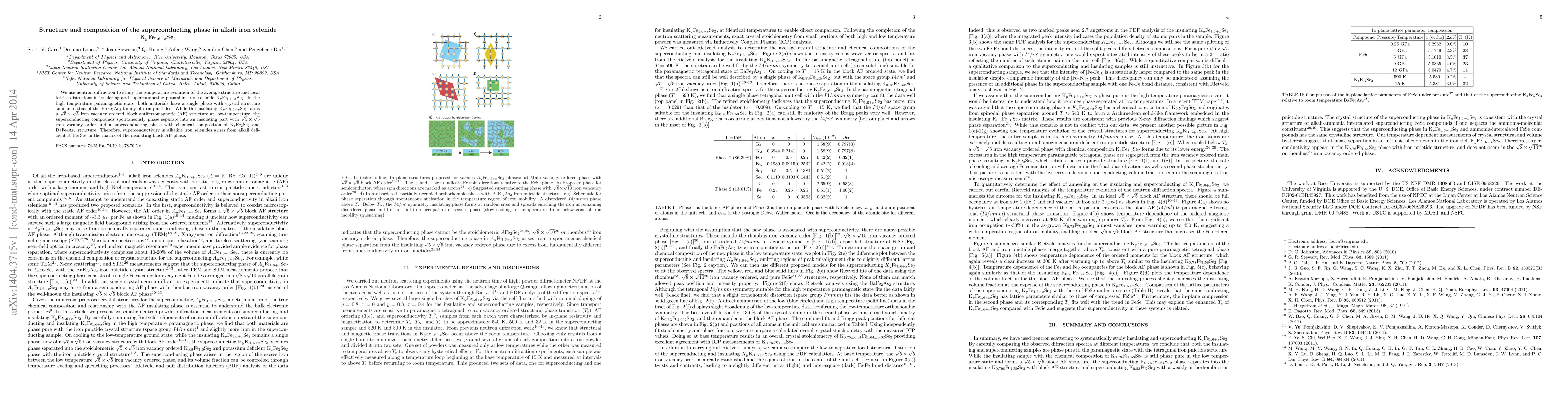We use neutron diffraction to study the temperature evolution of the average structure and local lattice distortions in insulating and superconducting potassium iron selenide K$_y$Fe$_{1.6+x}$Se$_2$. In the high temperature paramagnetic state, both materials have a single phase with crystal structure similar to that of the BaFe$_2$As$_2$ family of iron pnictides. While the insulating K$_y$Fe$_{1.6+x}$Se$_2$ forms a $\sqrt{5}\times\sqrt{5}$ iron vacancy ordered block antiferromagnetic (AF) structure at low-temperature, the superconducting compounds spontaneously phase separate into an insulating part with $\sqrt{5}\times\sqrt{5}$ iron vacancy order and a superconducting phase with chemical composition of K$_z$Fe$_{2}$Se$_2$ and BaFe$_2$As$_2$ structure. Therefore, superconductivity in alkaline iron selenides arises from alkali deficient K$_z$Fe$_{2}$Se$_2$ in the matrix of the insulating block AF phase.