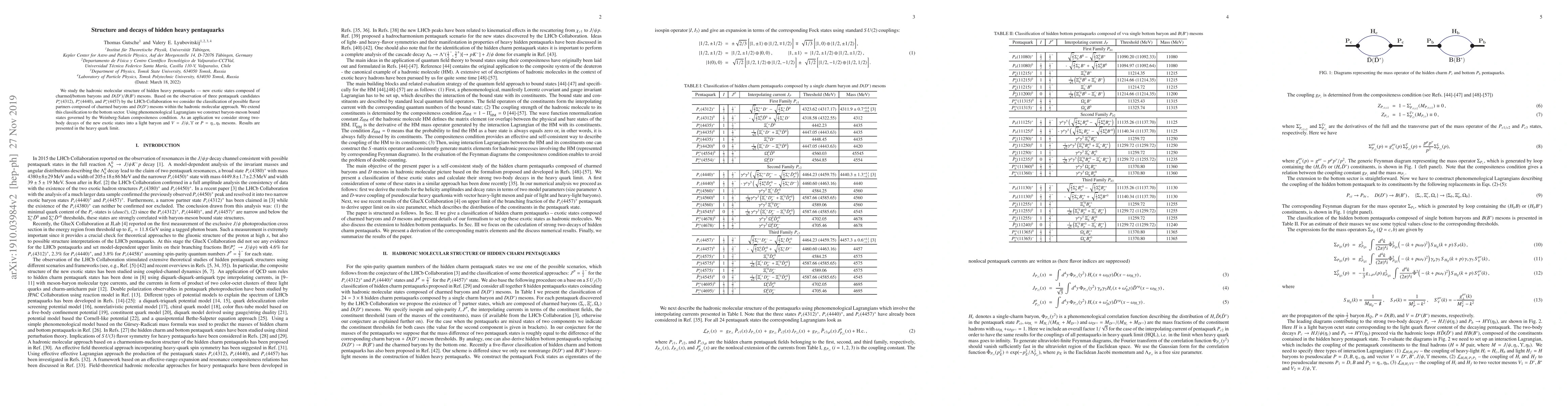 This paper explores the hadronic molecular structure of hidden heavy pentaquarks, composed of charmed/bottom baryons and $D/B$ mesons, and classifies their flavor partners. It examines strong two-body decay processes for these exotic states in the heavy quark limit.
