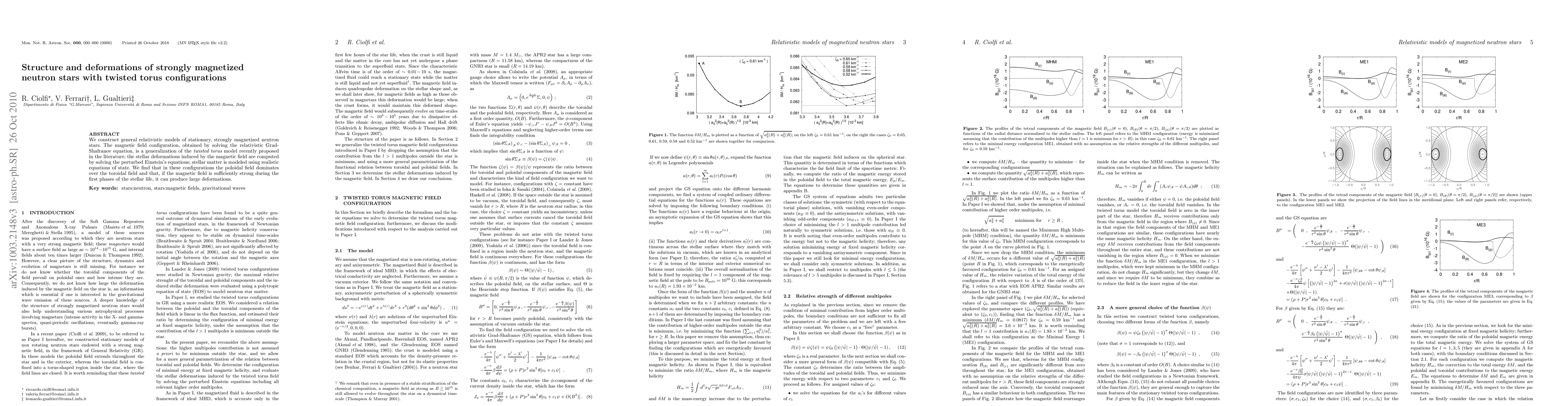 This paper constructs general relativistic models of neutron stars with twisted torus magnetic fields, solving the Grad-Shafranov equation and perturbed Einstein's equations to determine induced deformations. It finds that strong poloidal fields can lead to significant deformations, especially in the early life of the star.