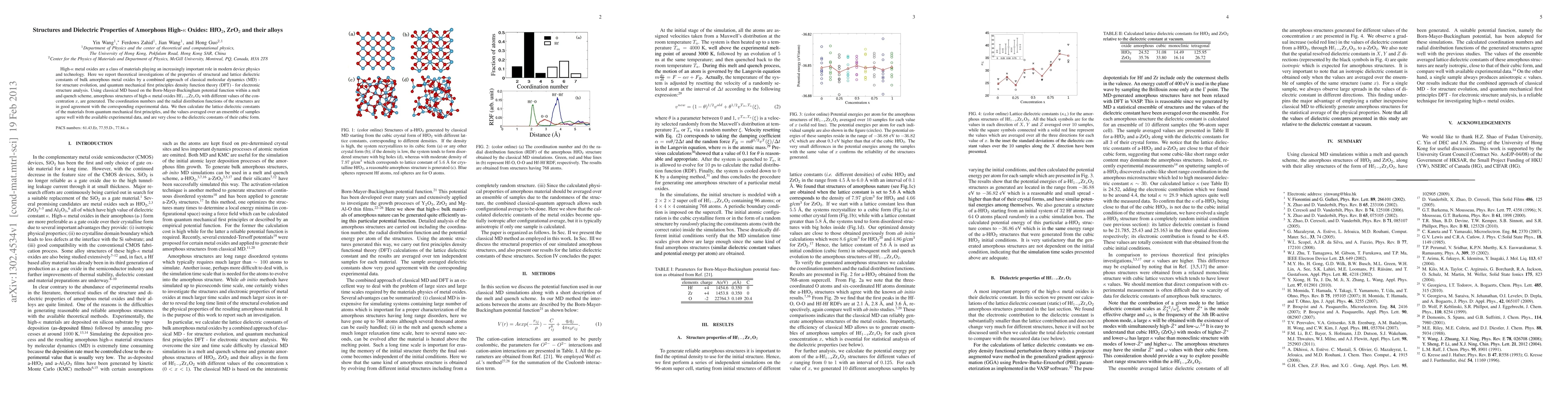 Classical MD simulations were used to generate amorphous structures of HfO2 and ZrO2, as well as alloy structures of the form Hf1-xZrxO2.
