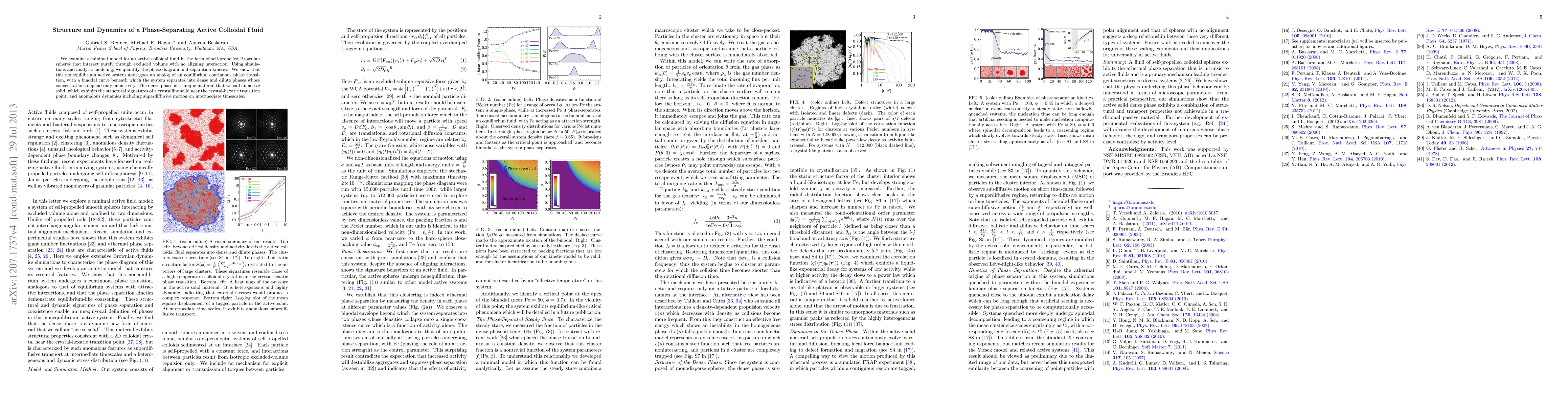 This study investigates a model of self-propelled colloidal particles that exhibit phase separation despite lacking aligning interactions, revealing anomalous fluctuations and a unique dense phase termed "active hexatic." Simulations and analytic modeling elucidate the phase diagram and kinetics of separation, highlighting the hybrid structural and fluid properties of the dense phase.