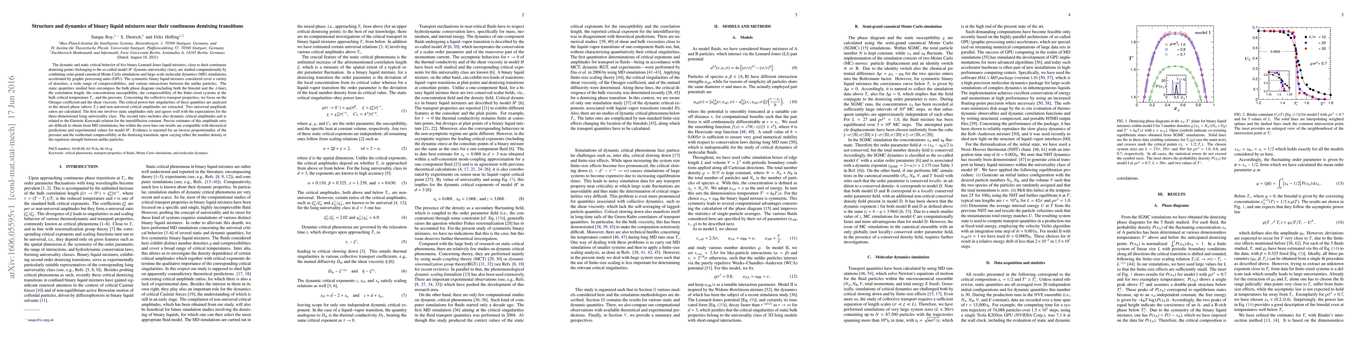 Researchers studied binary liquid mixtures near their demixing transitions using computational simulations, finding inverse proportionality between pressure and isothermal compressibility and evidence for universal amplitude ratios in the critical phase.