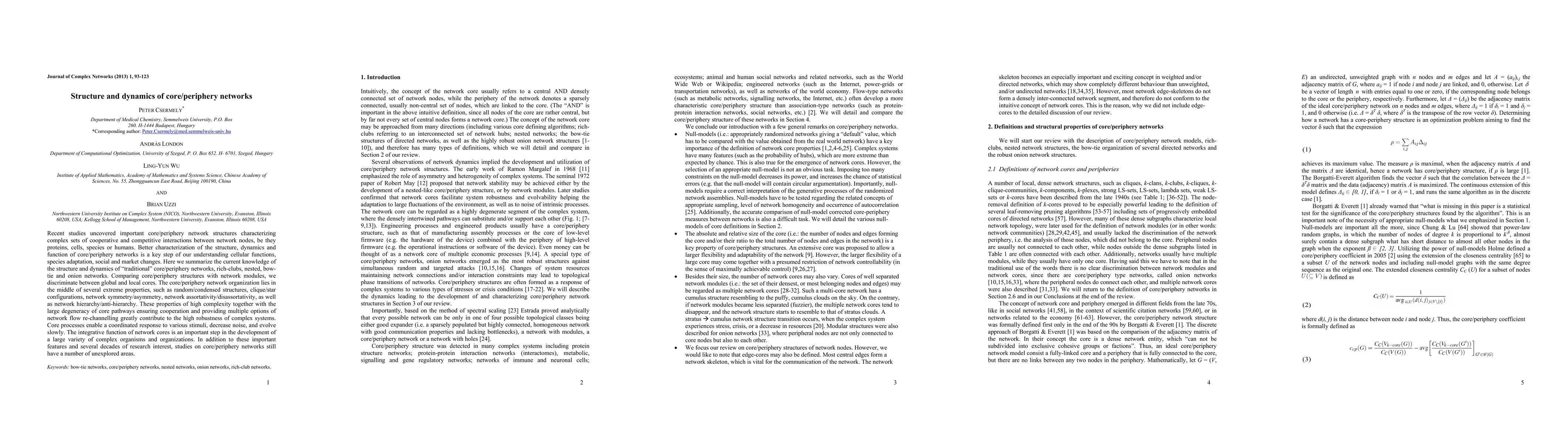 The research summarizes current knowledge on the structure and dynamics of core-periphery networks, rich-clubs, nested, bow-tie, and onion networks, comparing them with network modules.