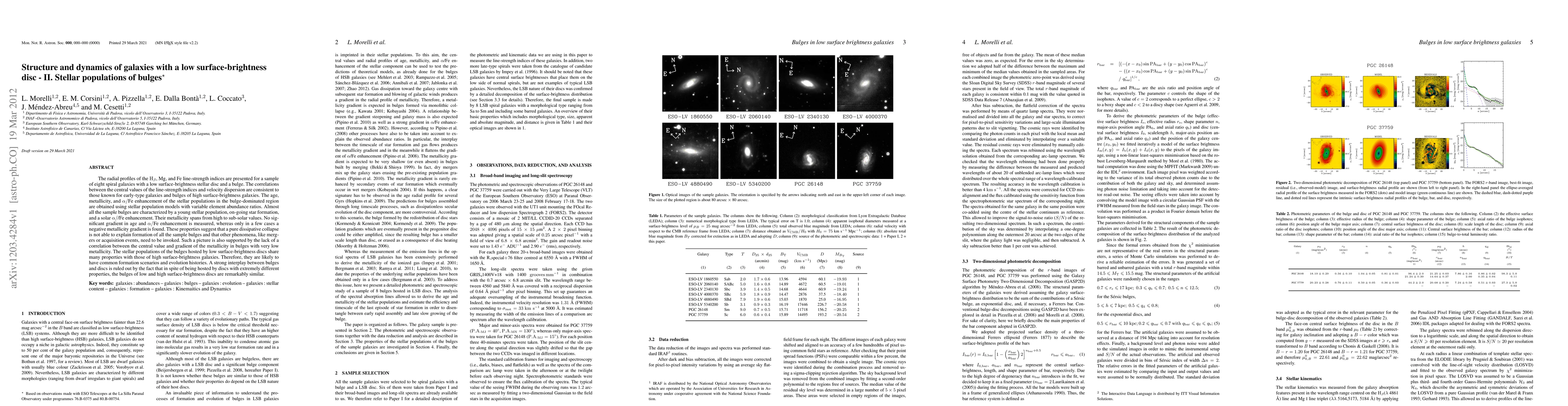 This paper investigates the stellar populations of bulges in eight low surface-brightness spiral galaxies, finding they are predominantly young with ongoing star formation and solar alpha/Fe enhancement. The results suggest that while dissipative collapse may not fully explain bulge formation, mergers or acquisition events likely play a role, indicating common formation scenarios with bulges in high surface-brightness galaxies.