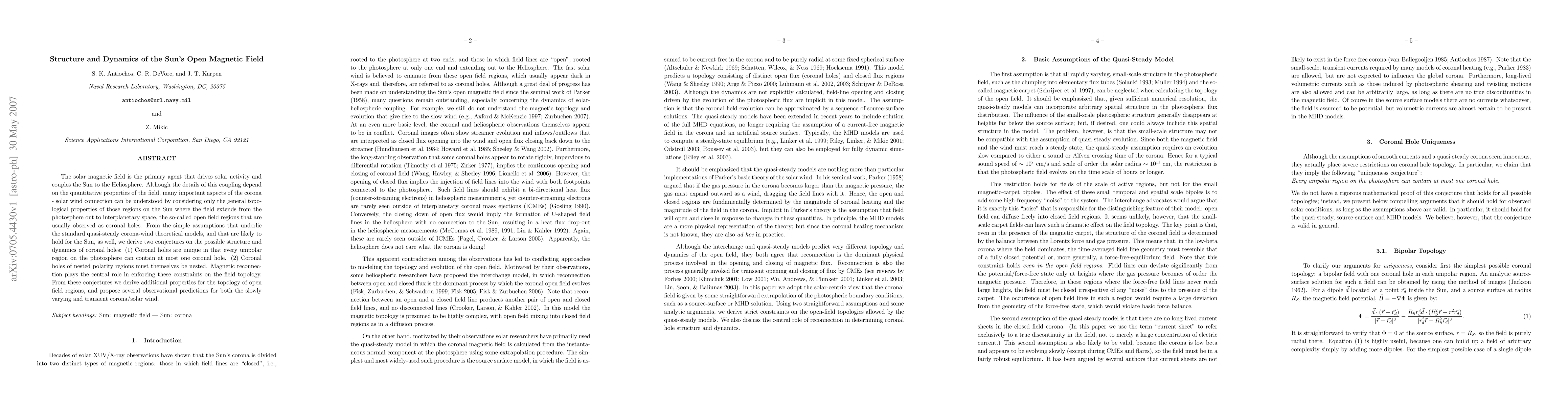 The solar magnetic field is the primary agent that drives solar activity and couples the Sun to the Heliosphere. Although the details of this coupling depend on the quantitative properties of the field, many important aspects of the corona - solar wind connection can be understood by considering only the general topological properties of those regions on the Sun where the field extends from the photosphere out to interplanetary space, the so-called open field regions that are usually observed as coronal holes. From the simple assumptions that underlie the standard quasi-steady corona-wind theoretical models, and that are likely to hold for the Sun, as well, we derive two conjectures on the possible structure and dynamics of coronal holes: (1) Coronal holes are unique in that every unipolar region on the photosphere can contain at most one coronal hole. (2) Coronal holes of nested polarity regions must themselves be nested. Magnetic reconnection plays the central role in enforcing these constraints on the field topology. From these conjectures we derive additional properties for the topology of open field regions, and propose several observational predictions for both the slowly varying and transient corona/solar wind.