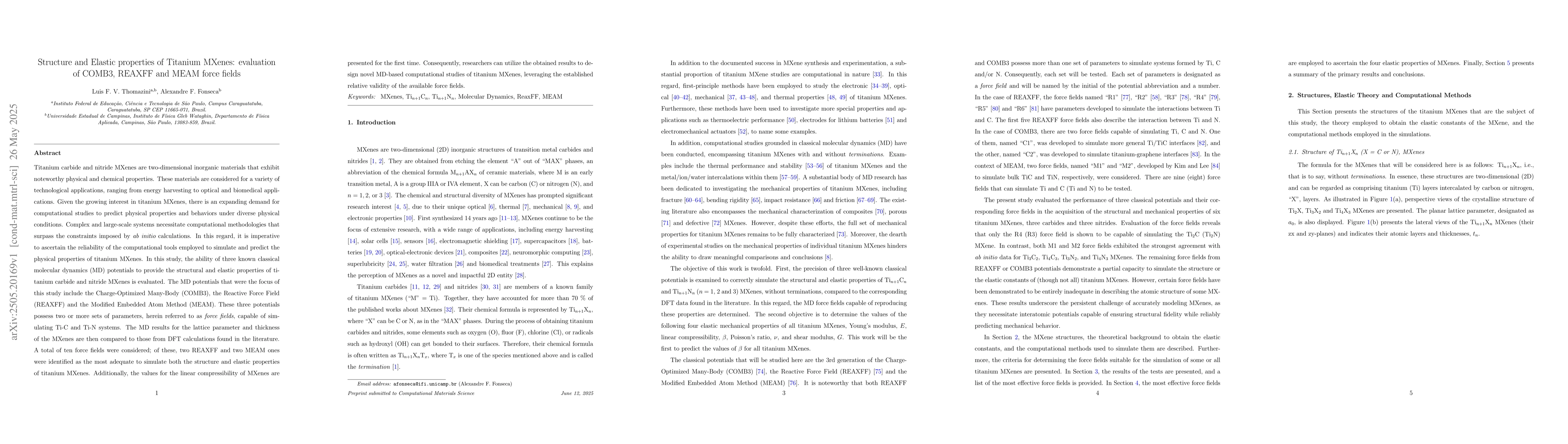 The paper presents a comprehensive evaluation of COMB3, REAXFF, and MEAM force fields for simulating titanium MXenes, identifying the most reliable ones for structural and elastic property predictions.
