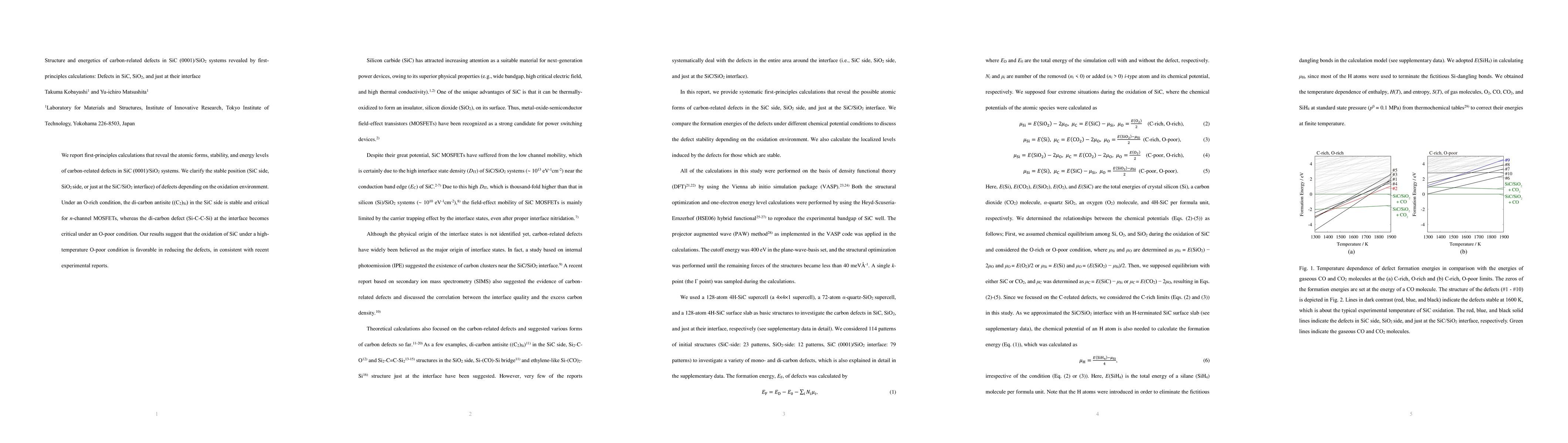 We report first-principles calculations that reveal the atomic forms, stability, and energy levels of carbon-related defects in SiC (0001)/SiO$_{\rm 2}$ systems. We clarify the stable position (SiC side, SiO$_{\rm 2}$ side, or just at the SiC/SiO$_{\rm 2}$ interface) of defects depending on the oxidation environment. Under an O-rich condition, the di-carbon antisite ((C$_{\rm 2}$)$_{\rm Si}$) in the SiC side is stable and critical for $n$-channel MOSFETs, whereas the di-carbon defect (Si-C-C-Si) at the interface becomes critical under an O-poor condition. Our results suggest that the oxidation of SiC under a high-temperature O-poor condition is favorable in reducing the defects, in consistent with recent experimental reports.