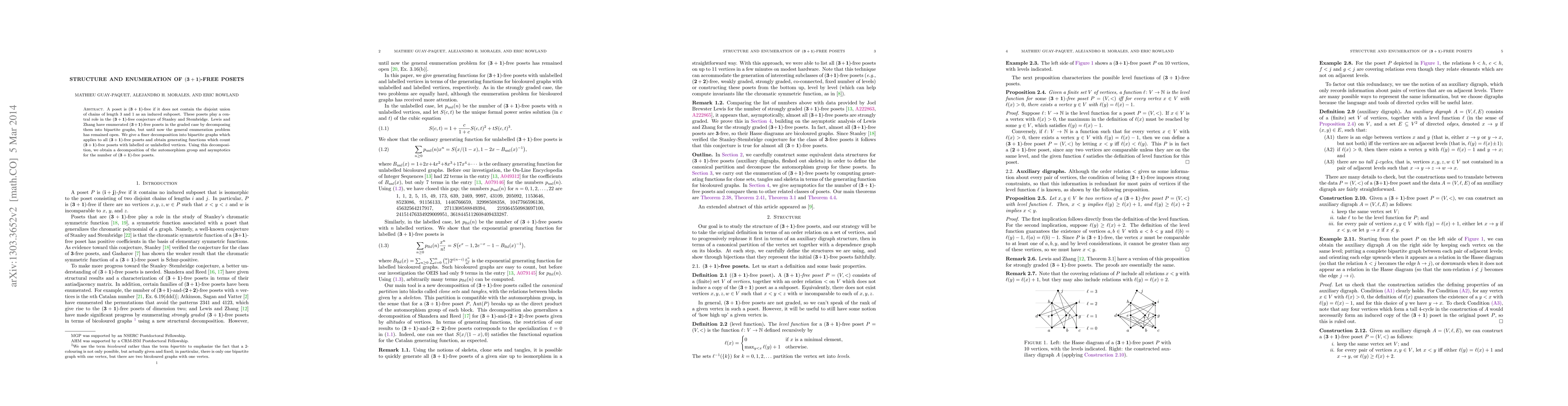 This paper addresses the enumeration of (3+1)-free posets, which exclude the disjoint union of chains of lengths 3 and 1. It introduces a finer decomposition into bipartite graphs, deriving generating functions for these posets and providing asymptotics for their count.