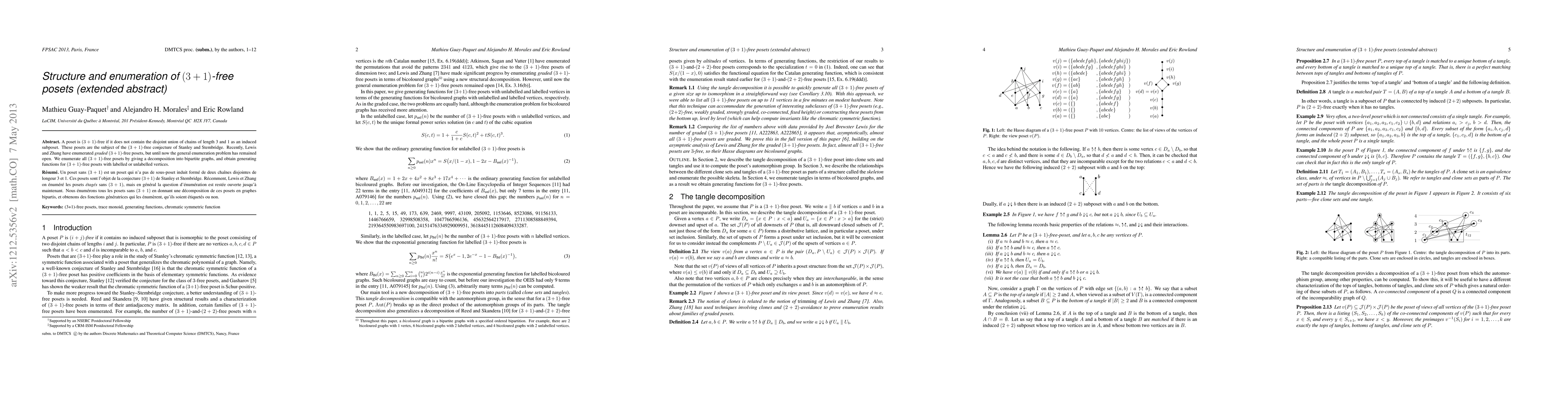 This paper enumerates all (3+1)-free posets, which lack the disjoint union of chains of lengths 3 and 1, by decomposing them into bipartite graphs and deriving generating functions for both labelled and unlabelled versions. This resolves the open problem posed by the (3+1)-free conjecture of Stanley and Stembridge.