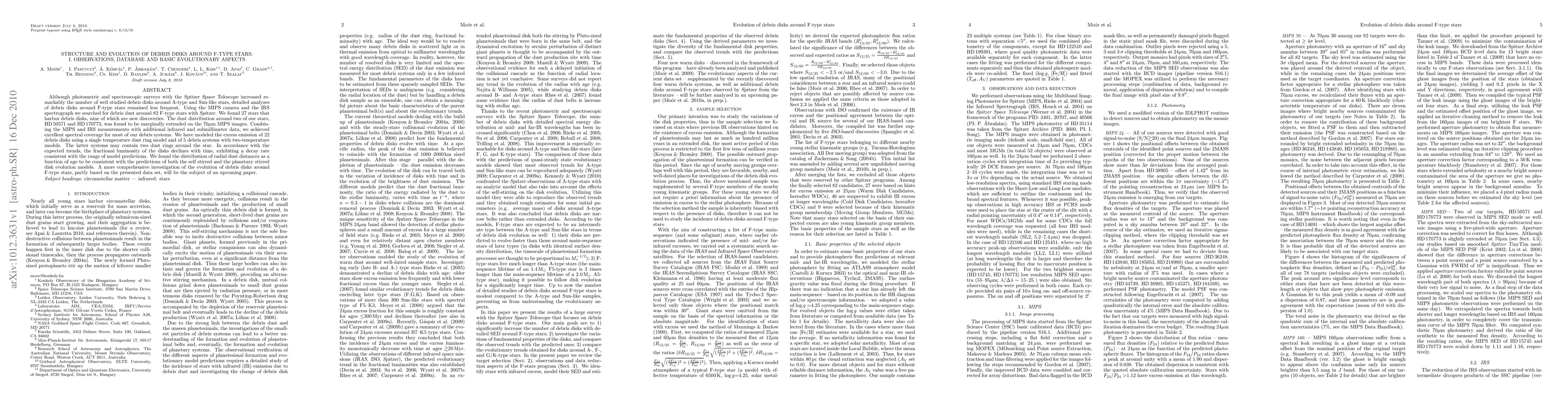 This paper reports on the detection of debris disks around 27 F-type stars using Spitzer Space Telescope observations, including nine newly discovered systems. The study combines MIPS and IRS data to model the dust distribution and finds evidence of two-temperature dust rings in some systems, suggesting complex disk structures. The results align with evolutionary models predicting a decline in disk luminosity over time.