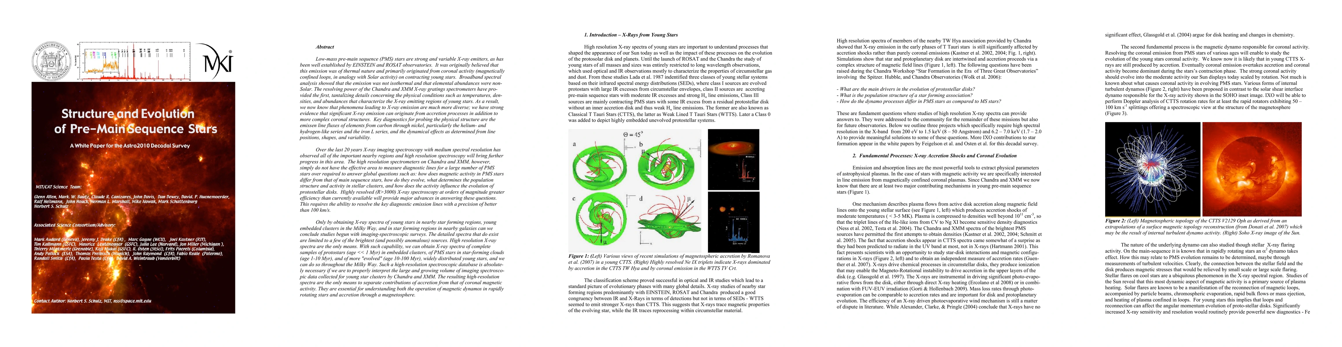 Low-mass pre-main sequence (PMS) stars are strong and variable X-ray emitters, as has been well established by EINSTEIN and ROSAT observatories. It was originally believed that this emission was of thermal nature and primarily originated from coronal activity (magnetically confined loops, in analogy with Solar activity) on contracting young stars. Broadband spectral analysis showed that the emission was not isothermal and that elemental abundances were non-Solar. The resolving power of the Chandra and XMM X-ray gratings spectrometers have provided the first, tantalizing details concerning the physical conditions such as temperatures, densities, and abundances that characterize the X-ray emitting regions of young star. These existing high resolution spectrometers, however, simply do not have the effective area to measure diagnostic lines for a large number of PMS stars over required to answer global questions such as: how does magnetic activity in PMS stars differ from that of main sequence stars, how do they evolve, what determines the population structure and activity in stellar clusters, and how does the activity influence the evolution of protostellar disks. Highly resolved (R>3000) X-ray spectroscopy at orders of magnitude greater efficiency than currently available will provide major advances in answering these questions. This requires the ability to resolve the key diagnostic emission lines with a precision of better than 100 km/s.