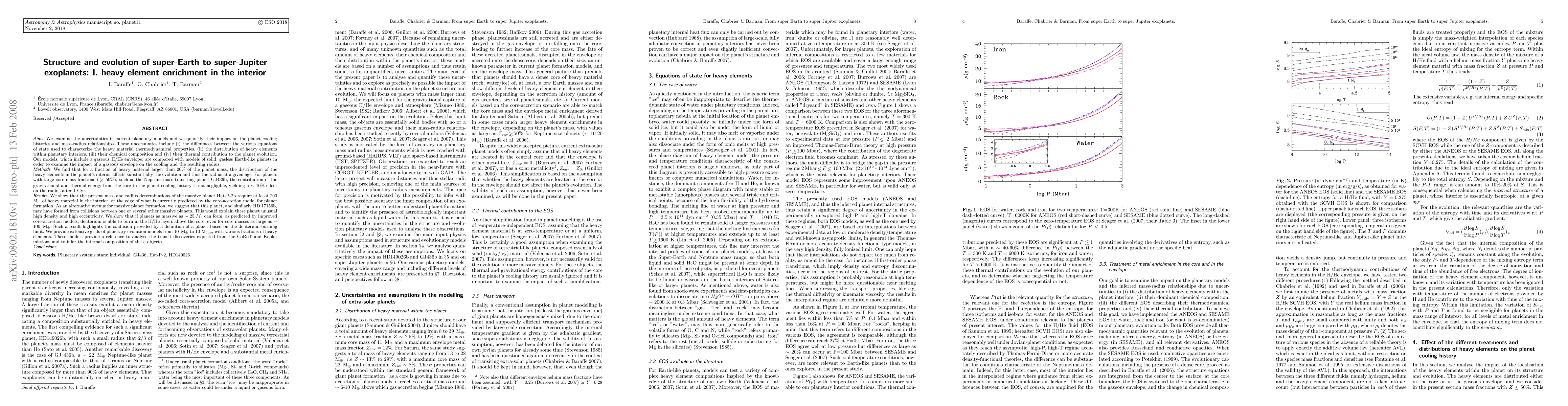 We examine the uncertainties in current planetary models and we quantify their impact on the planet cooling histories and mass-radius relationships. These uncertainties include (i) the differences between the various equations of state used to characterize the heavy material thermodynamical properties, (ii) the distribution of heavy elements within planetary interiors, (iii) their chemical composition and (iv) their thermal contribution to the planet evolution. Our models, which include a gaseous H/He envelope, are compared with models of solid, gasless Earth-like planets in order to examine the impact of a gaseous envelope on the cooling and the resulting radius. We find that for a fraction of heavy material larger than 20% of the planet mass, the distribution of the heavy elements in the planet's interior affects substantially the evolution and thus the radius at a given age. For planets with large core mass fractions ($\simgr$ 50%), such as the Neptune-mass transiting planet GJ436b, the contribution of the gravitational and thermal energy from the core to the planet cooling history is not negligible, yielding a $\sim$ 10% effect on the radius after 1 Gyr. We show that the present mass and radius determinations of the massive planet Hat-P-2b require at least 200 $\mearth$ of heavy material in the interior, at the edge of what is currently predicted by the core-accretion model for planet formation. We show that if planets as massive as $\sim$ 25 $\mjup$ can form, as predicted by improved core-accretion models, deuterium is able to burn in the H/He layers above the core, even for core masses as large as $\sim$ 100 $\mearth$. We provide extensive grids of planetary evolution models from 10 $\mearth$ to 10 M$_{\rm Jup}$, with various fractions of heavy elements.
