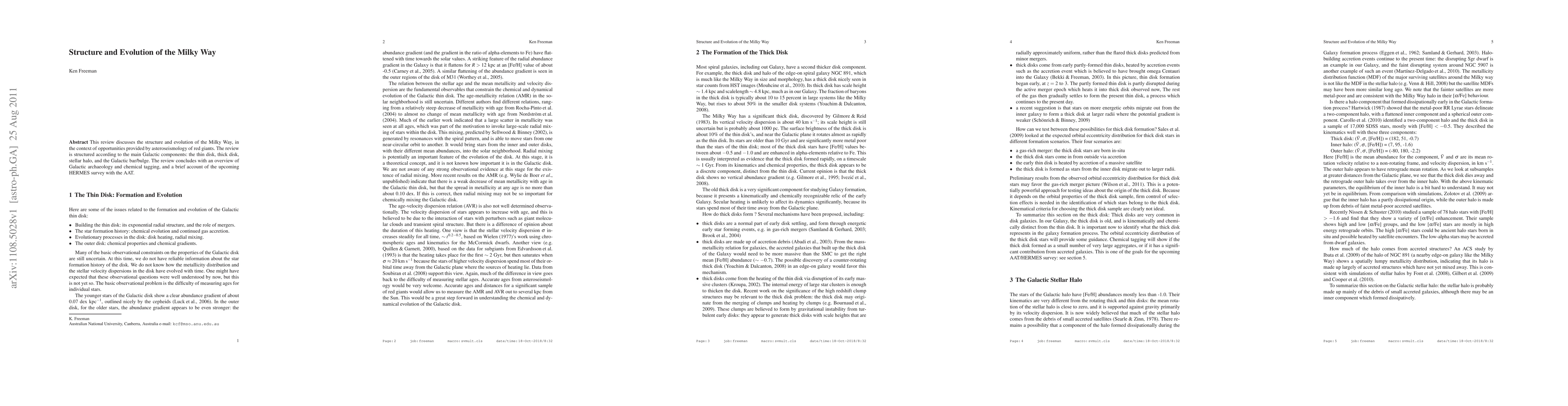 This review explores the structure and evolution of the Milky Way, focusing on the thin disk, thick disk, stellar halo, and Galactic bar/bulge, utilizing insights from red giant asteroseismology. It concludes with an overview of Galactic archaeology, chemical tagging, and the HERMES survey with the AAT.