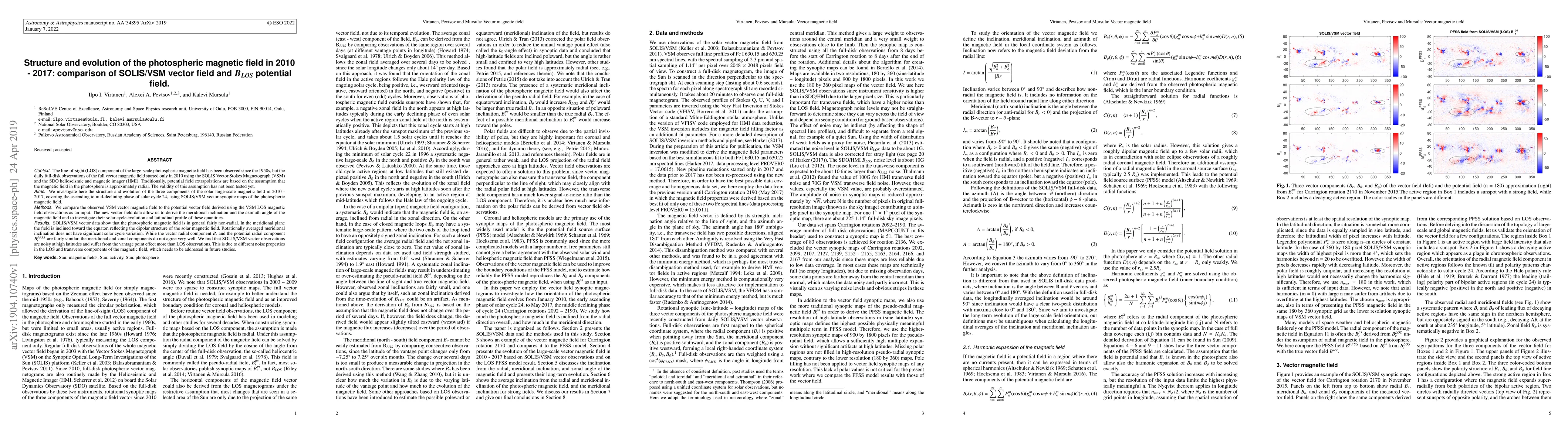 Researchers compared solar photospheric magnetic field data from 2010-2017 using SOLIS/VSM vector synoptic maps to potential field extrapolations, finding the field is generally non-radial and showing significant variations in meridional inclination and azimuth angle.