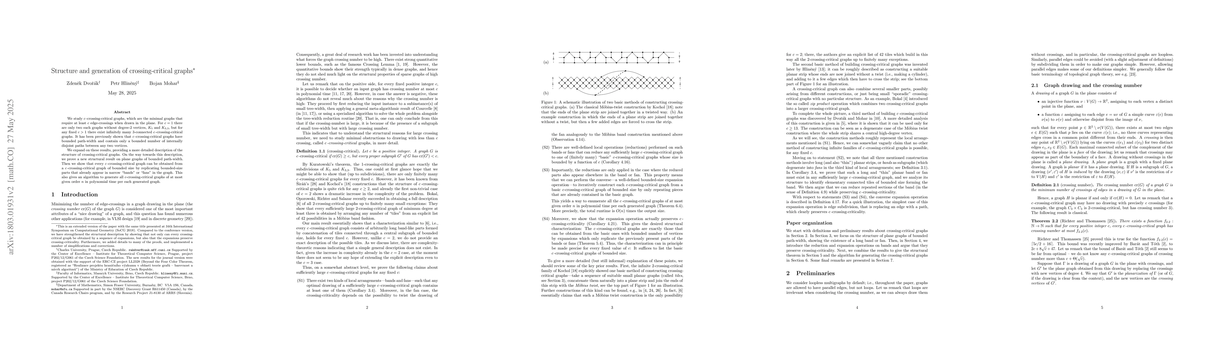 The paper introduces a new structural characterization of plane graphs with bounded path-width and presents an algorithm for generating crossing-critical graphs.