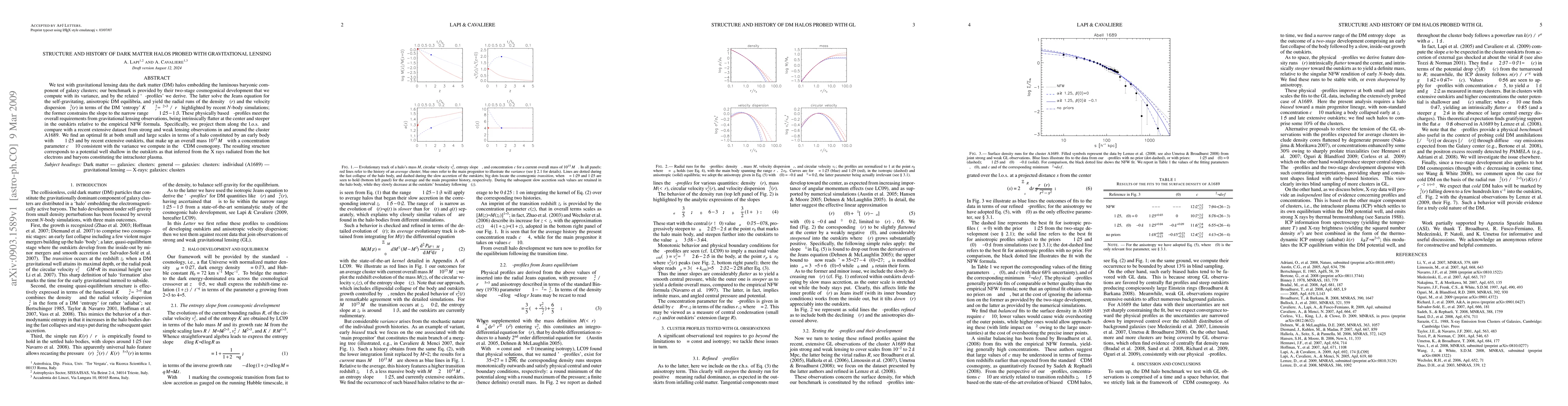 We test with gravitational lensing data the dark matter (DM) halos embedding the luminous baryonic component of galaxy clusters; our benchmark is provided by their two-stage cosmogonical development that we compute with its variance, and by the related '\alpha-profiles' we derive. The latter solve the Jeans equation for the self-gravitating, anisotropic DM equilibria, and yield the radial runs of the density \rho(r) and the velocity dispersion \sigma_r^2(r) in terms of the DM 'entropy' K = \sigma_r^2/\rho^(2/3) ~ r^(\alpha) highlighted by recent N-body simulations; the former constrains the slope to the narrow range \alpha ~ 1.25 - 1.3. These physically based \alpha-profiles meet the overall requirements from gravitational lensing observations, being intrinsically flatter at the center and steeper in the outskirts relative to the empirical NFW formula. Specifically, we project them along the l.o.s. and compare with a recent extensive dataset from strong and weak lensing observations in and around the cluster A1689. We find an optimal fit at both small and large scales in terms of a halo constituted by an early body with \alpha ~ 1.25 and by recent extensive outskirts, that make up an overall mass 10^15 M_sun with a concentration parameter c ~ 10 consistent with the variance we compute in the \LambdaCDM cosmogony. The resulting structure corresponds to a potential well shallow in the outskirts as that inferred from the X rays radiated from the hot electrons and baryons constituting the intracluster plasma.