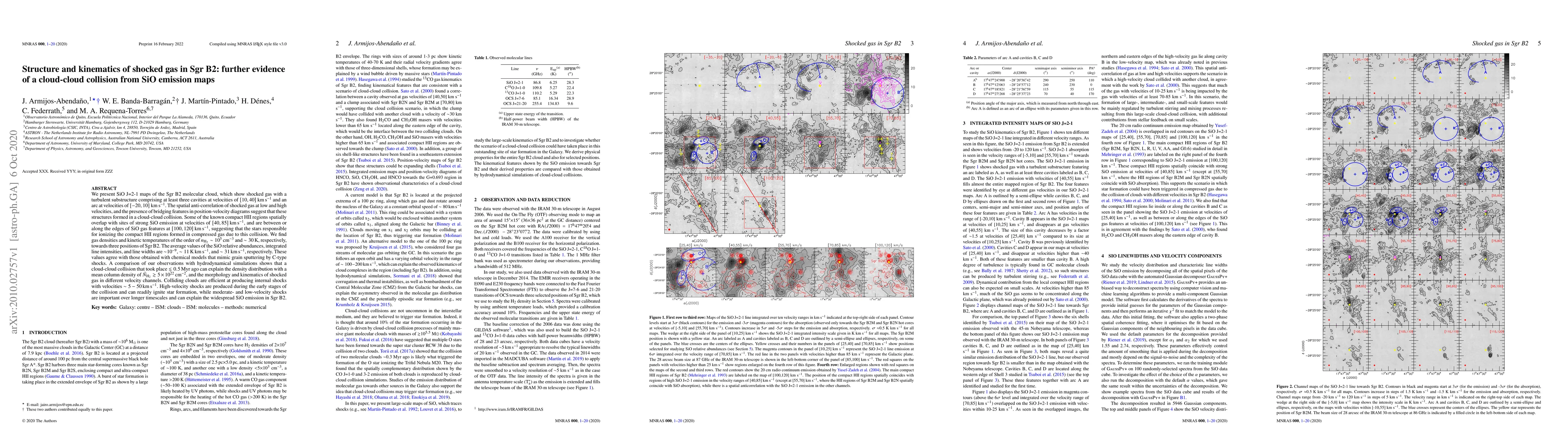 Researchers study shocked gas in Sgr B2 cloud using SiO emission maps, finding evidence of a cloud-cloud collision that led to internal shocks and ionizing stars.