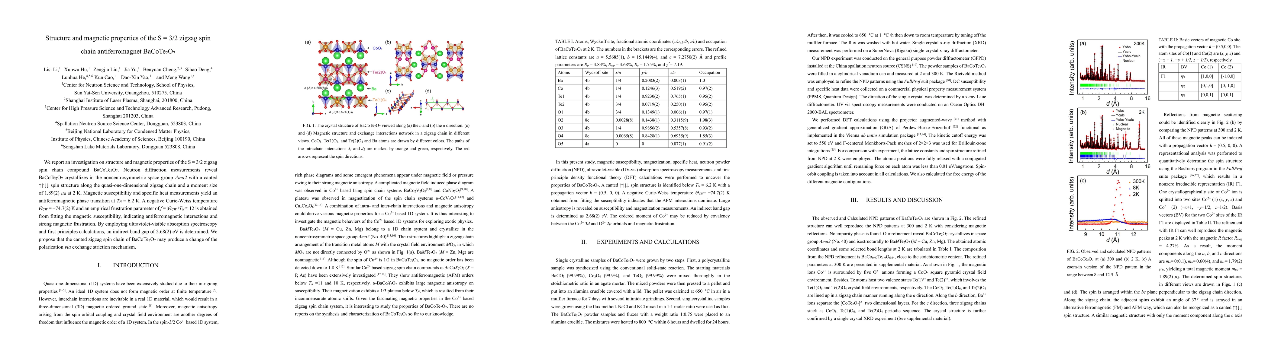 This study investigates the structure and magnetic properties of BaCoTe$_2$O$_7$, revealing a noncentrosymmetric crystal structure with a canted zigzag spin chain, an antiferromagnetic phase transition at 6.2 K, and strong magnetic frustration. The compound exhibits an indirect band gap of 2.68 eV, suggesting potential polarization changes via the exchange striction mechanism.