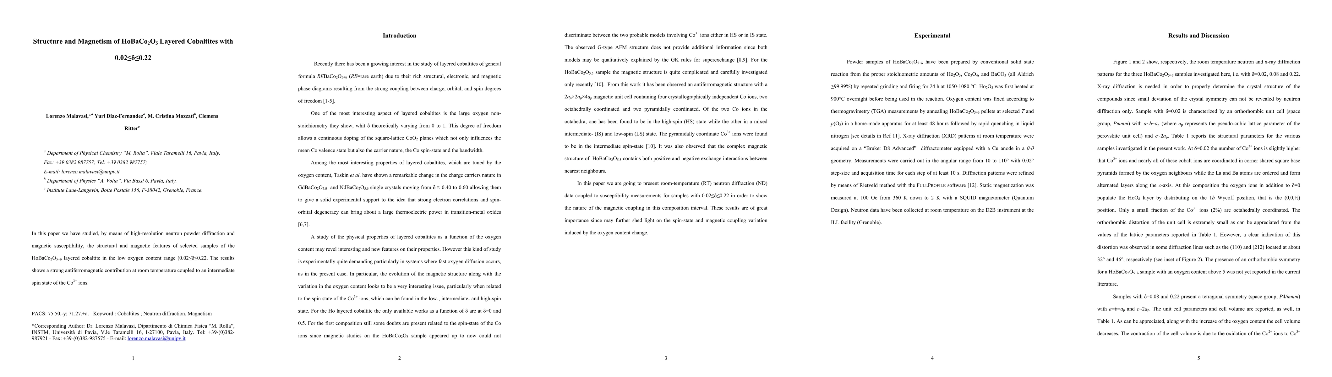 of selected samples of the HoBaCo2O5+delta layered cobaltite in the low oxygen