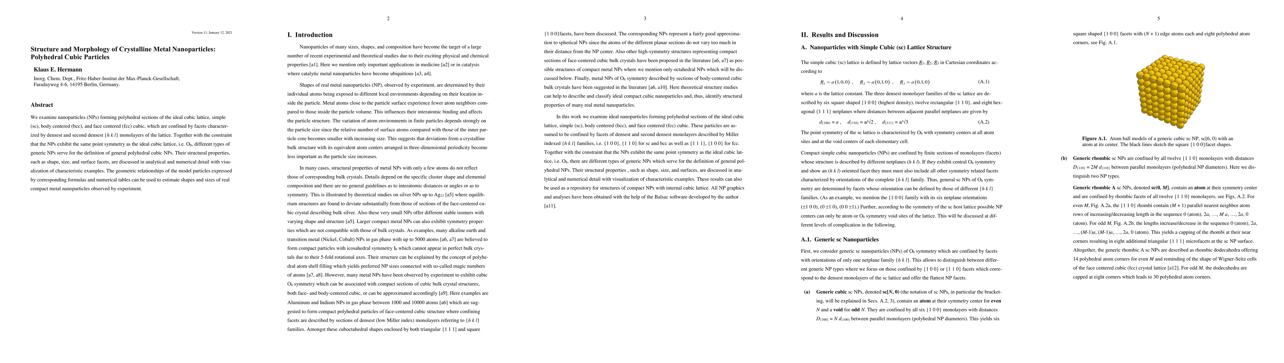This paper investigates the structure and morphology of crystalline metal nanoparticles, focusing on polyhedral cubic particles based on simple cubic, body-centered cubic, and face-centered cubic lattices. It provides analytical and numerical details on their shape, size, and surface facets, offering formulas and tables for estimating real metal nanoparticle shapes and sizes observed experimentally.