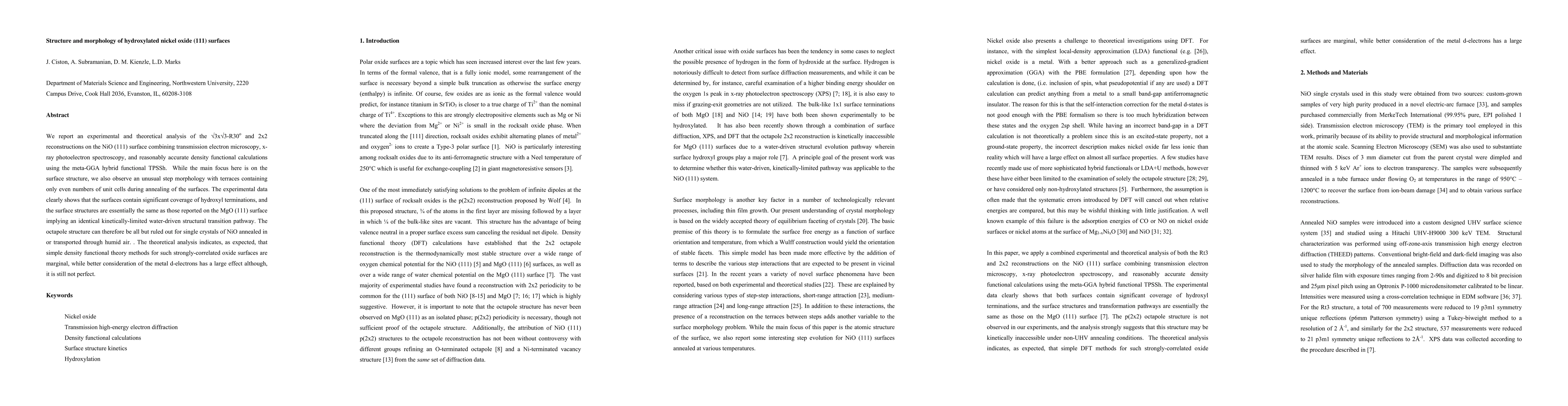 We report an experimental and theoretical analysis of the sqrt(3)x sqrt(3)-R30 and 2x2 reconstructions on the NiO (111) surface combining transmission electron microscopy, x-ray photoelectron spectroscopy, and reasonably accurate density functional calculations using the meta-GGA hybrid functional TPSSh. While the main focus here is on the surface structure, we also observe an unusual step morphology with terraces containing only even numbers of unit cells during annealing of the surfaces. The experimental data clearly shows that the surfaces contain significant coverage of hydroxyl terminations, and the surface structures are essentially the same as those reported on the MgO (111) surface implying an identical kinetically-limited water-driven structural transition pathway. The octapole structure can therefore be all but ruled out for single crystals of NiO annealed in or transported through humid air. . The theoretical analysis indicates, as expected, that simple density functional theory methods for such strongly-correlated oxide surfaces are marginal, while better consideration of the metal d-electrons has a large effect although, it is still not perfect.