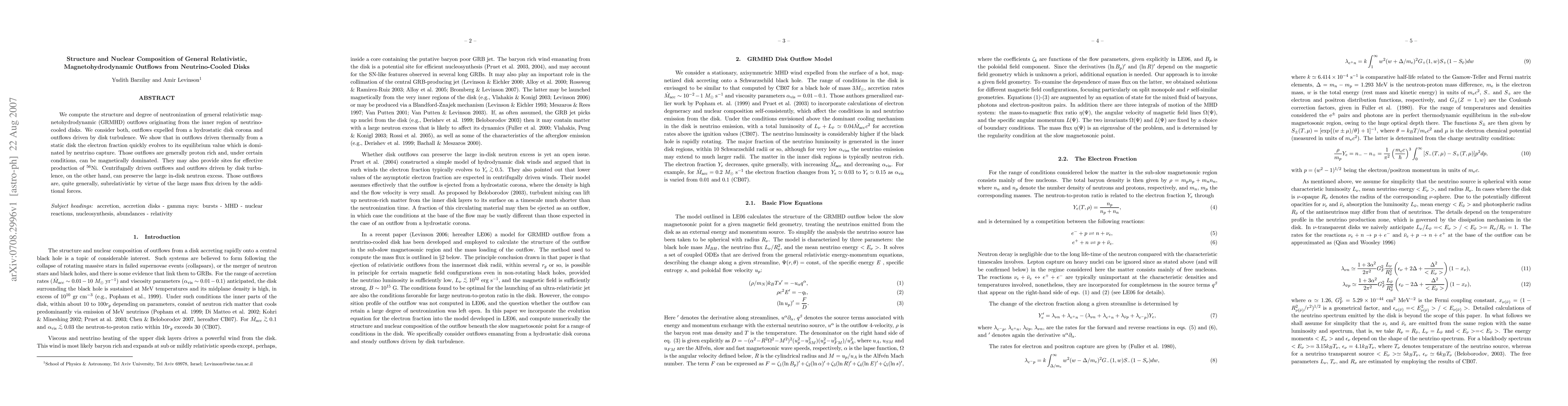 This study explores the structure and nuclear composition of general relativistic magnetohydrodynamic outflows from neutrino-cooled disks, revealing that thermally driven outflows become proton-rich and magnetically dominated, while centrifugally driven and turbulent outflows preserve neutron excess and remain subrelativistic due to high mass flux.