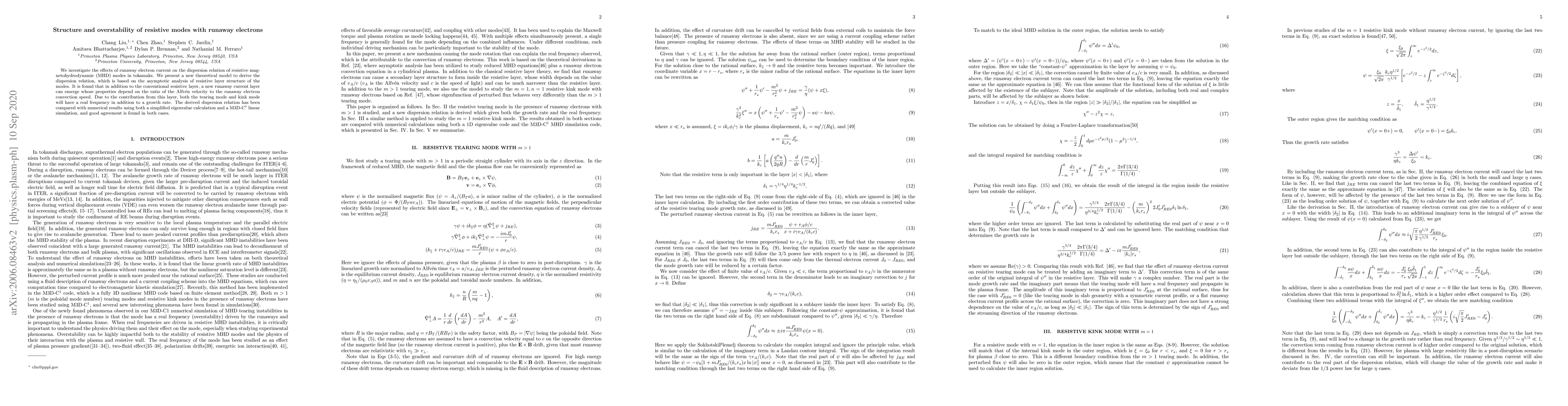 This paper develops a new theoretical model to analyze the dispersion relation of resistive magnetohydrodynamic modes in tokamaks, revealing the emergence of a new runaway current layer. The model predicts that both tearing and kink modes will exhibit real frequencies due to contributions from this additional layer, validated by both simplified calculations and M3D-C1 simulations.