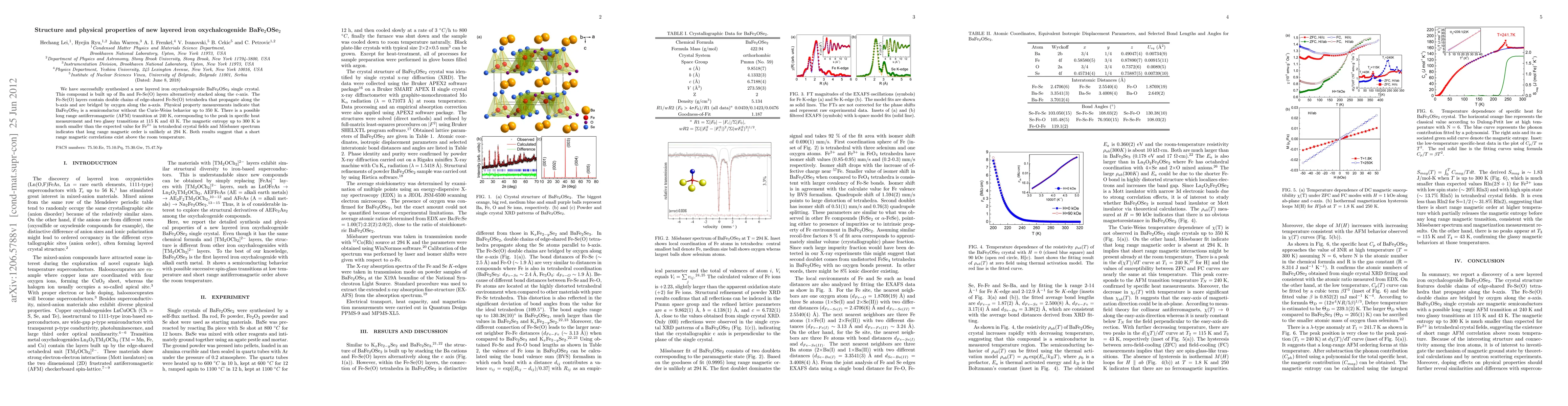 We have successfully synthesized a new layered iron oxychalcogenide BaFe2OSe2 single crystal. This compound is built up of Ba and Fe-Se(O) layers alternatively stacked along the c-axis. The Fe-Se(O) layers contain double chains of edge-shared Fe-Se(O) tetrahedra that propagate along the b-axis and are bridged by oxygen along the a-axis. Physical property measurements indicate that BaFe2OSe2 is a semiconductor without the Curie-Weiss behavior up to 350 K. There is a possible long range antiferromagnetic (AFM) transition at 240 K, corresponding to the peak in specific heat measurement and two glassy transitions at 115 K and 43 K. The magnetic entropy up to 300 K is much smaller than the expected value for Fe2+ in tetrahedral crystal fields and Mosbauer spectrum indicates that long range magnetic order is unlikely at 294 K. Both results suggest that a short range magnetic correlations exist above the room temperature.
