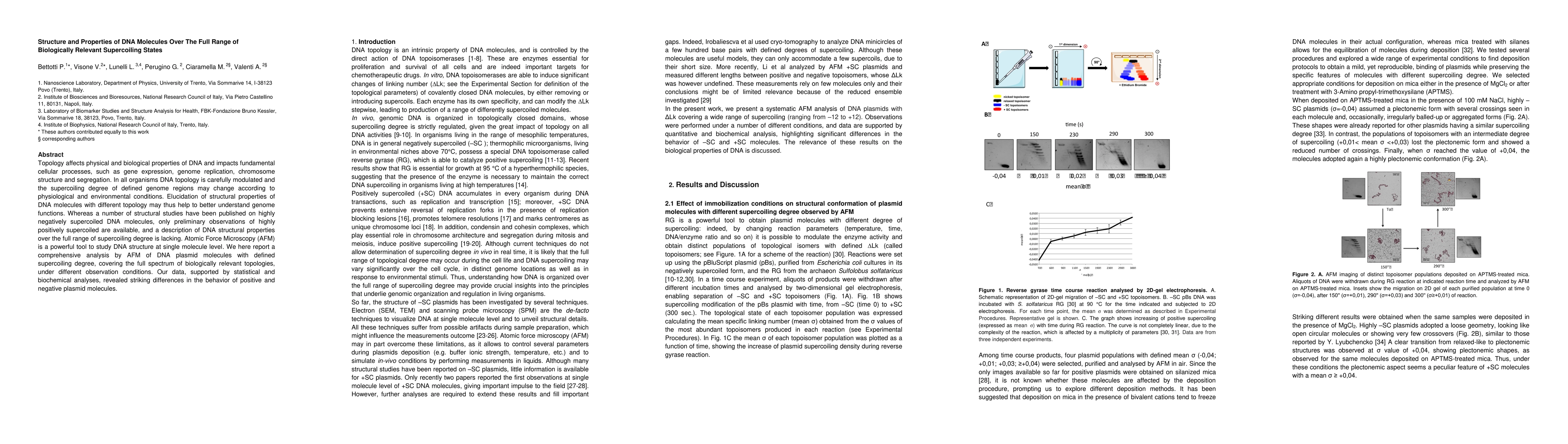 This paper uses Atomic Force Microscopy (AFM) to analyze the structure of DNA plasmids across the full range of biologically relevant supercoiling states, revealing significant differences in the behavior of positively and negatively supercoiled DNA. The study provides insights into how DNA topology influences fundamental cellular processes.