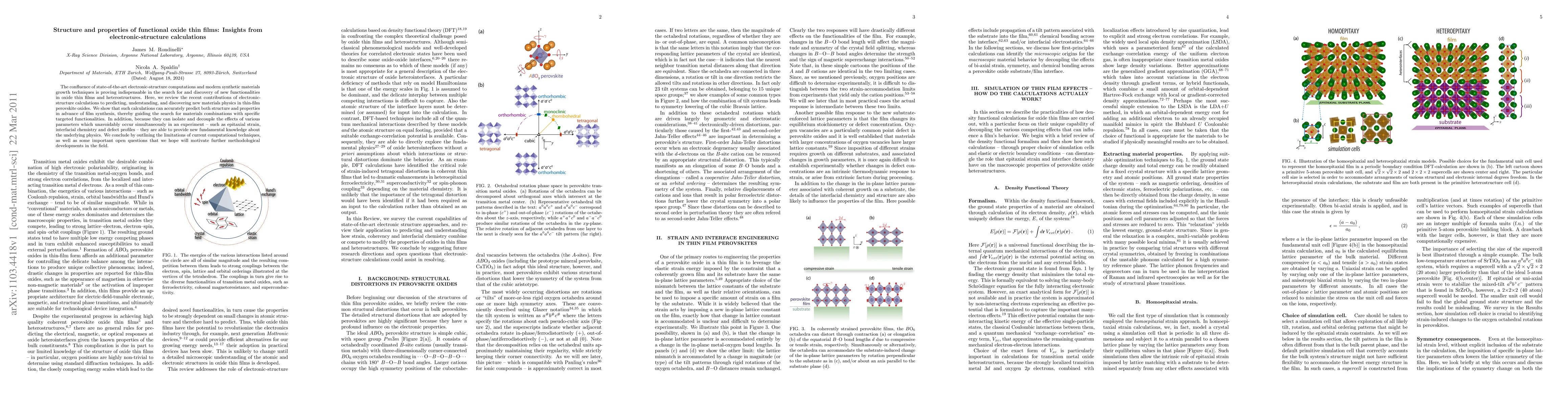 This paper reviews how advanced electronic-structure calculations predict and understand the properties of functional oxide thin films, guiding the discovery of new materials with specific functionalities. It highlights the ability of these calculations to isolate experimental parameters and provide fundamental insights into the underlying physics, while also noting current limitations and future research directions.