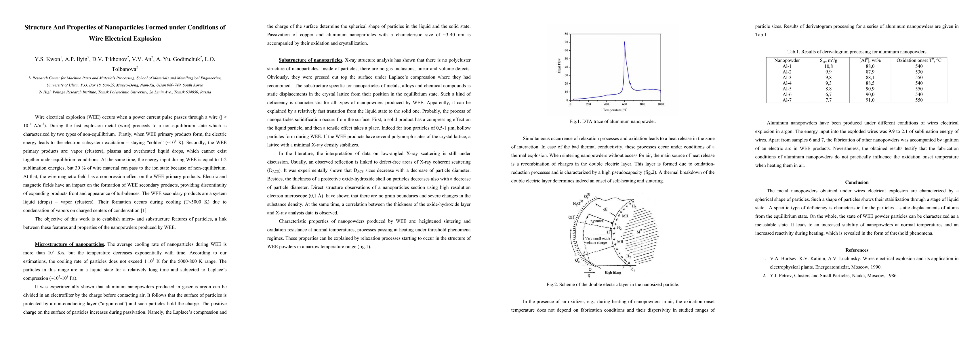 Structure and properties of nanoparticles formed under conditions of wire electrical explosion were studied. It was shown that the state of WEE power particles can be characterized as a metastable state. It leads to an increased stability of nanopowders at normal temperatures and an increased reactivity during heating, which is revealed in the form of threshold phenomena.