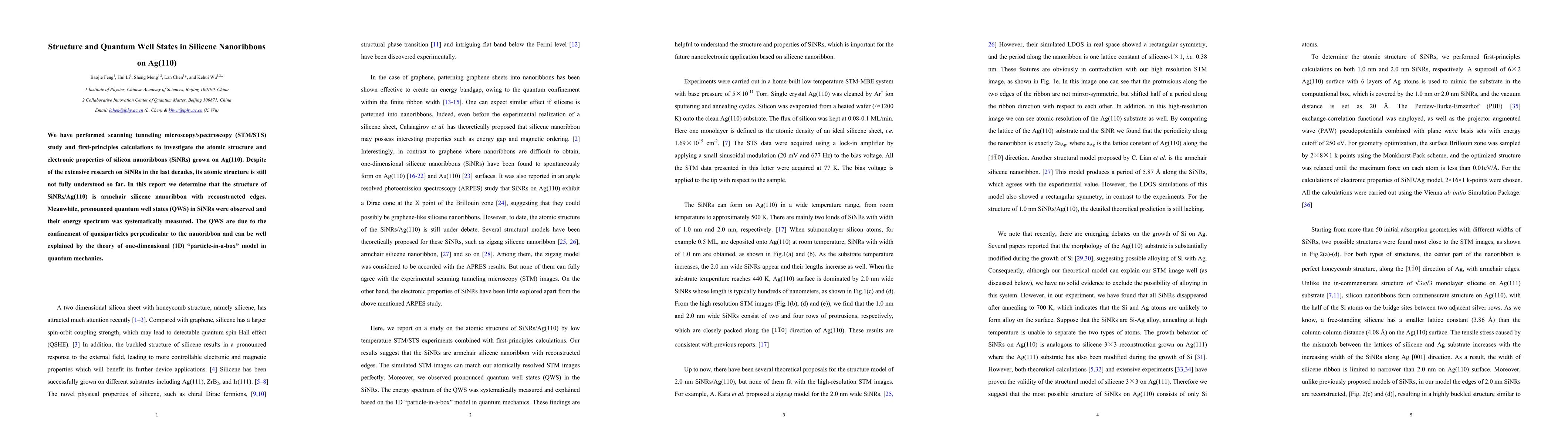 This study utilizes STM/STS and first-principles calculations to reveal the atomic structure and electronic properties of armchair silicene nanoribbons on Ag(110), showing reconstructed edges. The research identifies pronounced quantum well states in the nanoribbons, explained by a 1D 'particle-in-a-box' model.