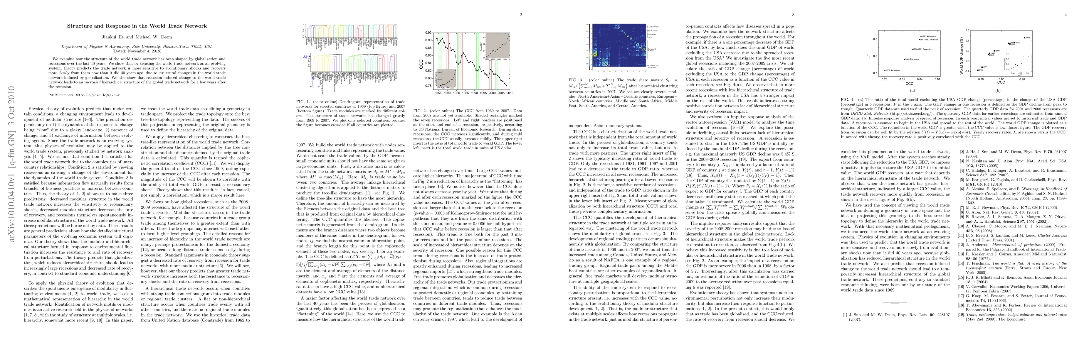 The research treats the world trade network as an evolving system, applying physical theory of evolution to predict its sensitivity and recovery from shocks due to globalization and recessions. Hierarchical clustering is used to construct a tree-like representation of the world trade network, with the cophenetic correlation coefficient (CCC) measuring the hierarchy.