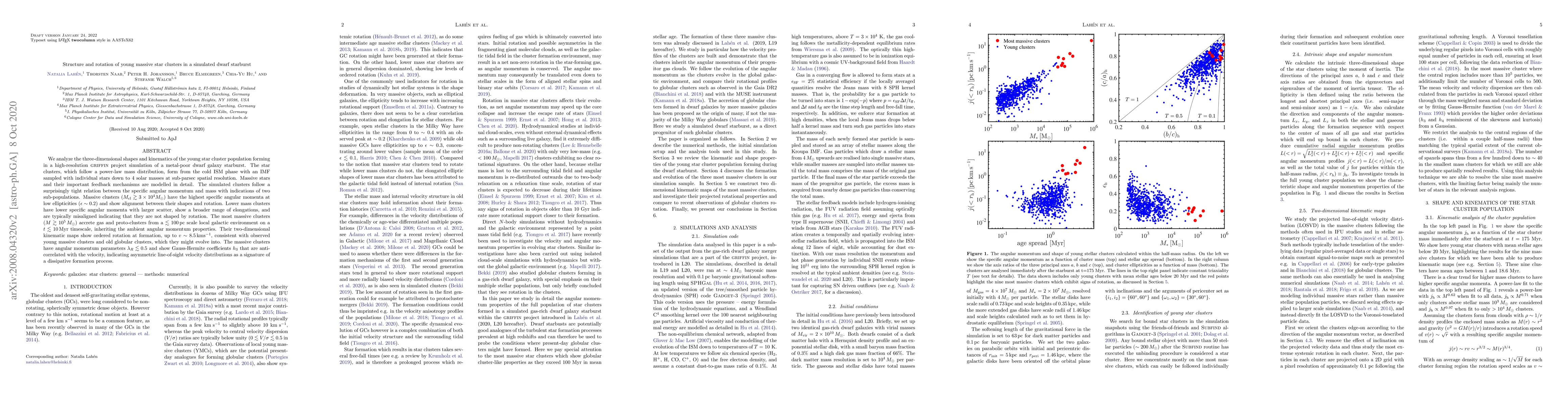 This research analyzes young star clusters in a simulated metal-poor dwarf galaxy starburst, revealing a strong correlation between cluster mass and angular momentum. Massive clusters (>10^5 M☉) show high angular momentum, low ellipticity, alignment with rotation, and signs of dissipative formation, similar to observed young massive and old globular clusters.