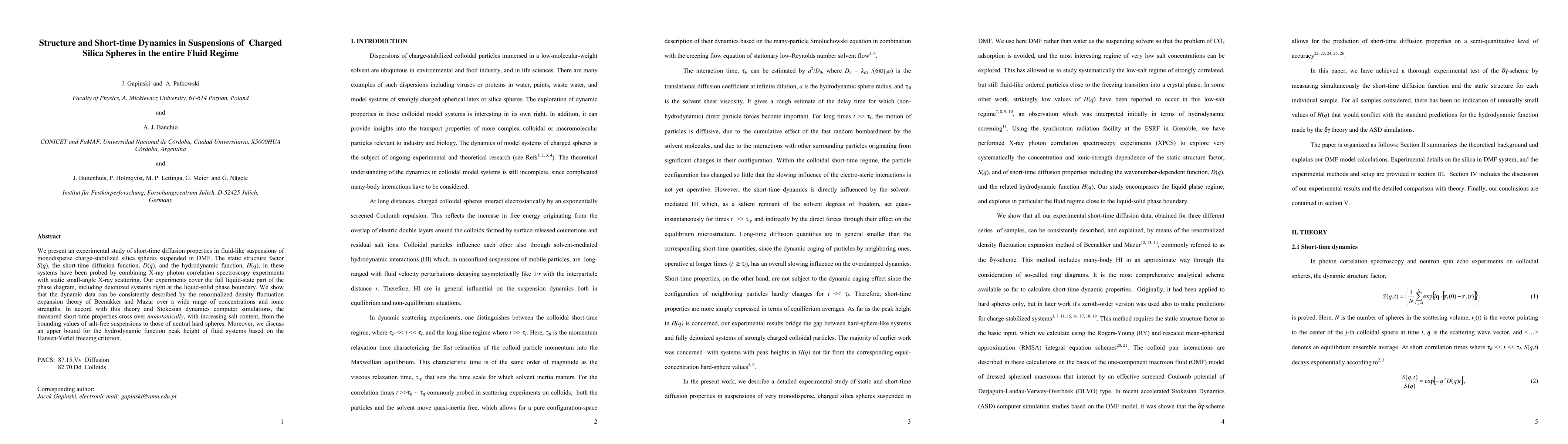 We present an experimental study of short-time diffusion properties in fluid-like suspensions of monodisperse charge-stabilized silica spheres suspended in DMF. The static structure factor S(q), the short-time diffusion function, D(q), and the hydrodynamic function, H(q), in these systems have been probed by combining X-ray photon correlation spectroscopy experiments with static small-angle X-ray scattering. Our experiments cover the full liquid-state part of the phase diagram, including deionized systems right at the liquid-solid phase boundary. We show that the dynamic data can be consistently described by the renormalized density fluctuation expansion theory of Beenakker and Mazur over a wide range of concentrations and ionic strengths. In accord with this theory and Stokesian dynamics computer simulations, the measured short-time properties cross over monotonically, with increasing salt content, from the bounding values of salt-free suspensions to those of neutral hard spheres. Moreover, we discuss an upper bound for the hydrodynamic function peak height of fluid systems based on the Hansen-Verlet freezing criterion.