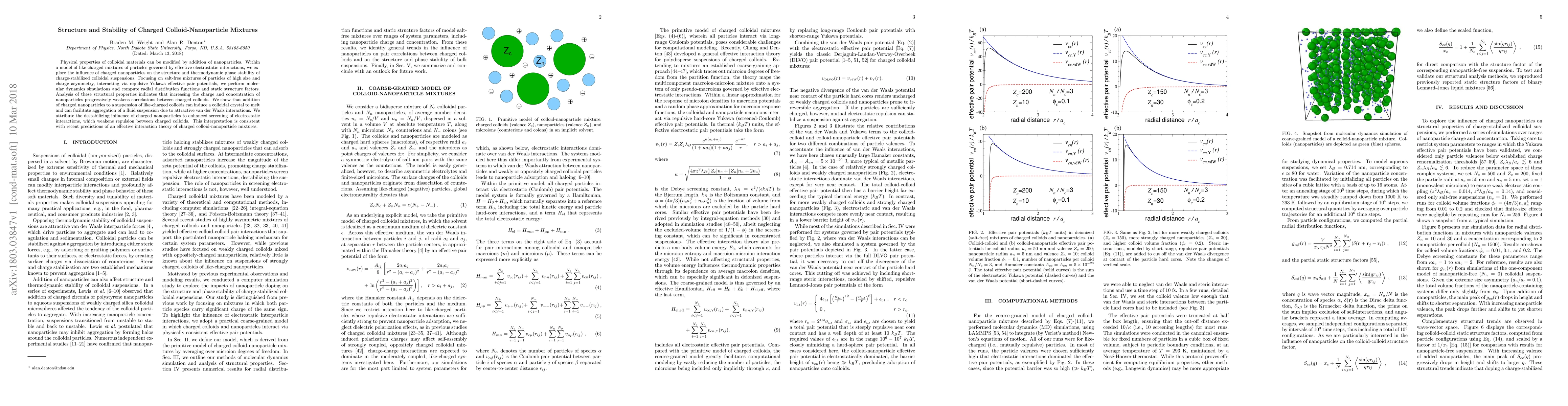 Physical properties of colloidal materials can be modified by addition of nanoparticles. Within a model of like-charged mixtures of particles governed by effective electrostatic interactions, we explore the influence of charged nanoparticles on the structure and thermodynamic phase stability of charge-stabilized colloidal suspensions. Focusing on salt-free mixtures of particles of high size and charge asymmetry, interacting via repulsive Yukawa effective pair potentials, we perform molecular dynamics simulations and compute radial distribution functions and static structure factors. Analysis of these structural properties indicates that increasing the charge and concentration of nanoparticles progressively weakens correlations between charged colloids. We show that addition of charged nanoparticles to a suspension of like-charged colloids can induce a colloidal crystal to melt and can facilitate aggregation of a fluid suspension due to attractive van der Waals interactions. We attribute the destabilizing influence of charged nanoparticles to enhanced screening of electrostatic interactions, which weakens repulsion between charged colloids. This interpretation is consistent with recent predictions of an effective interaction theory of charged colloid-nanoparticle mixtures.