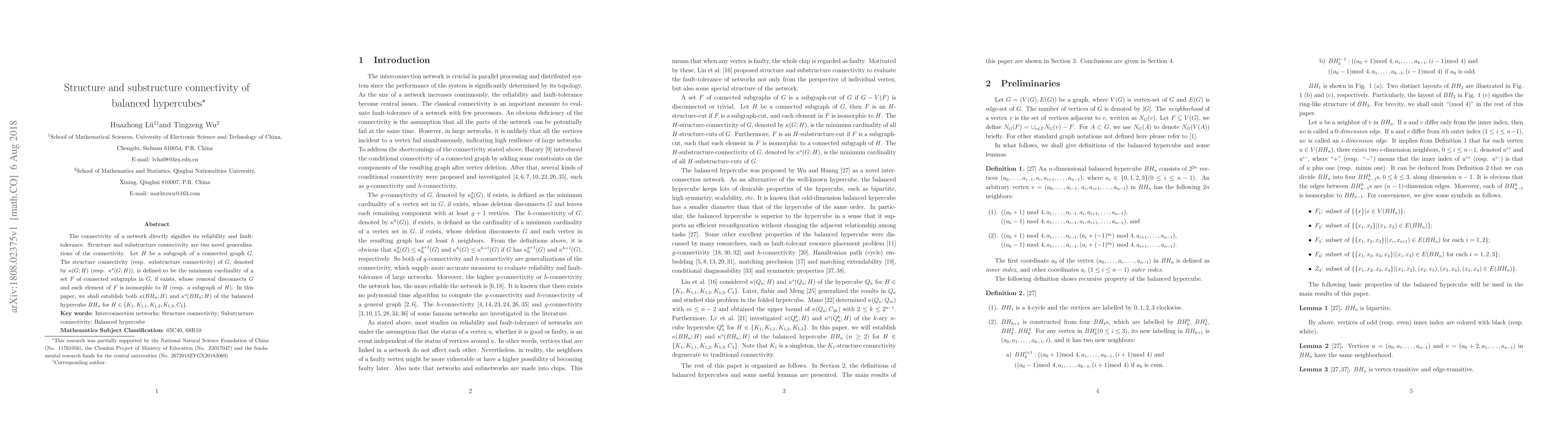 This paper investigates the structure and substructure connectivity of balanced hypercubes, defining these novel connectivity metrics for network reliability and fault-tolerance. It determines the connectivity values $\kappa(BH_n;H)$ and $\kappa^s(BH_n;H)$ for balanced hypercubes $BH_n$ concerning various subgraphs $H$.